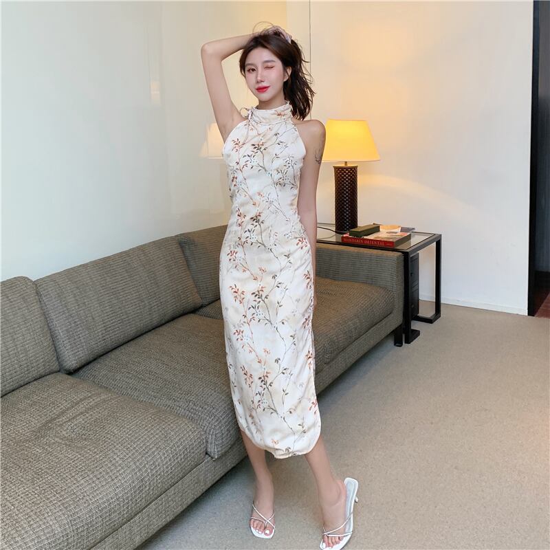 プリントホルター薄手ノースリーブドレス サマー 夏物 ナナファッション36502011941