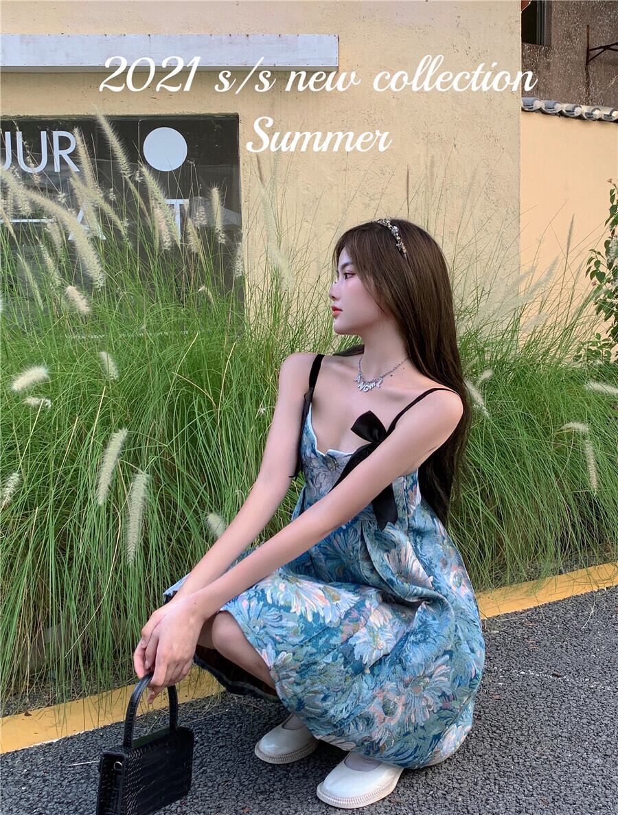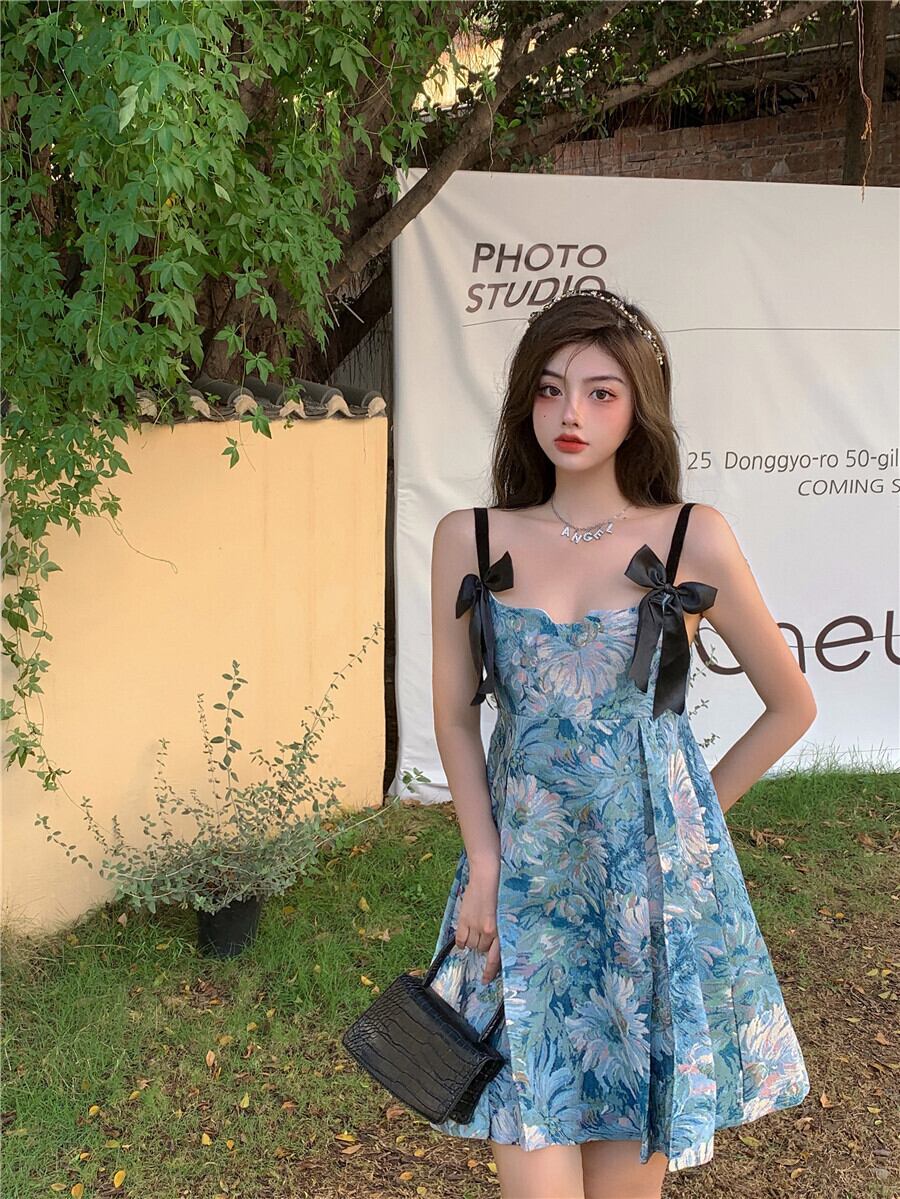 スタイルブルースカート ドレス サマー リボン 大人ガーリー スウィート キュート カジュアル 夏物 ナナファッション4603140623