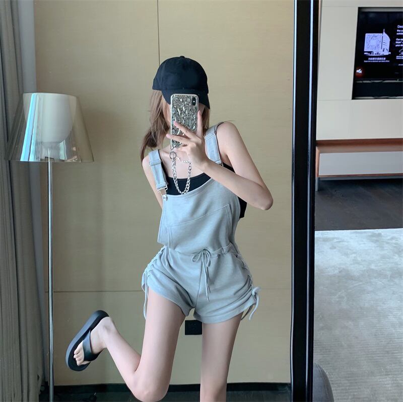 カジュアルパンツ ハイウェストウェスト薄手ワイドレッグギャザーショーツ ジャンプスーツ オールインワン レディース ストリート ブルマー ワイドパンツ ナナファッション18223870312