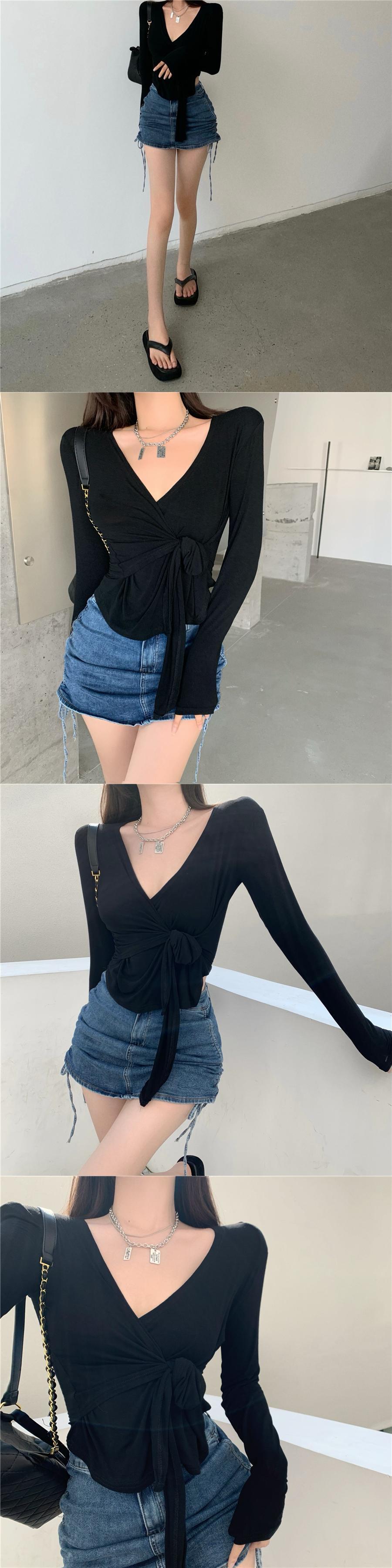スタイル薄手Vネックスリムトップス ロング ストリート Tシャツ ナナファッション89916049609