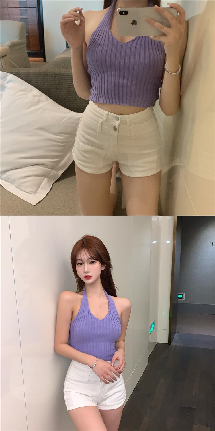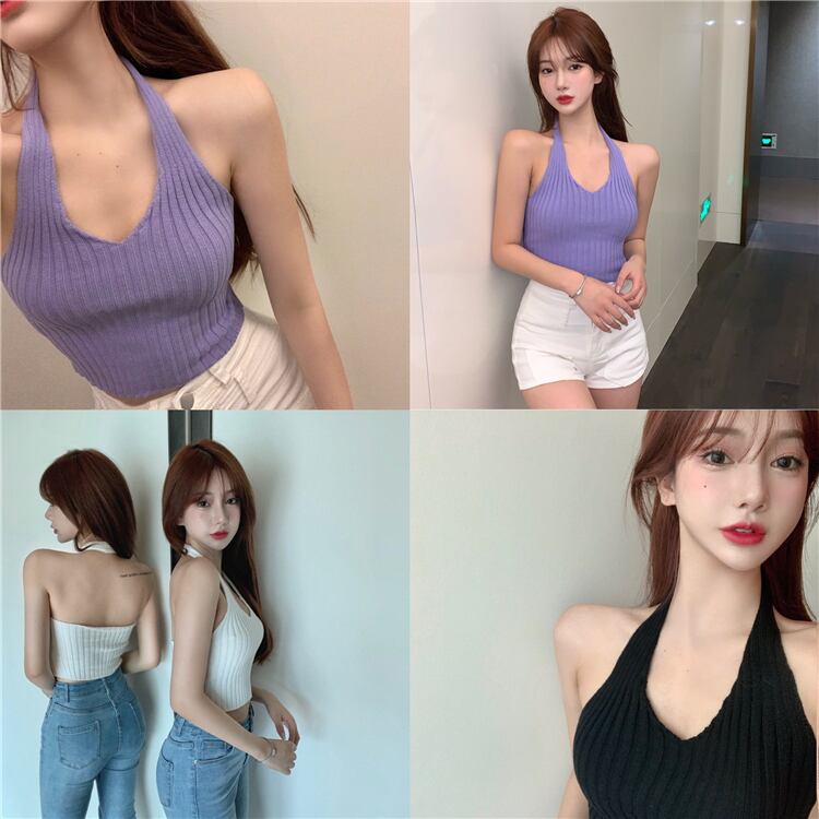 ショートニットサマースタイルホルタートップス 大人ガーリー スウィート キュート カジュアル 夏物 ナナファッション87426419596