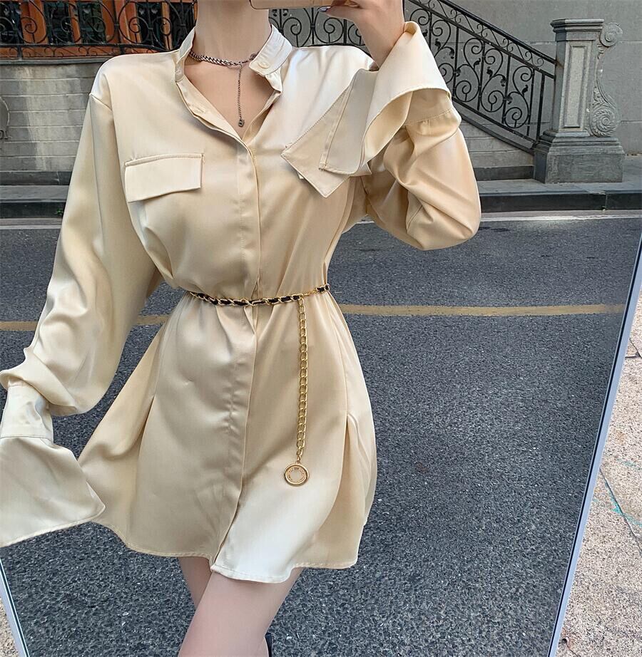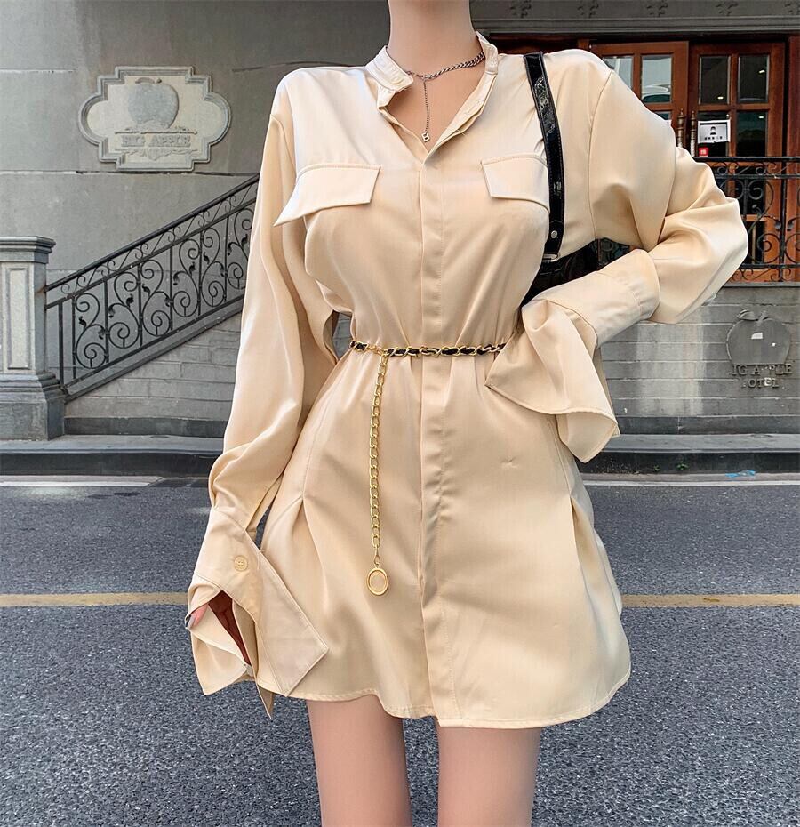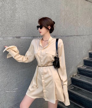 色:シャンパンシャツドレス,チェーンベルト