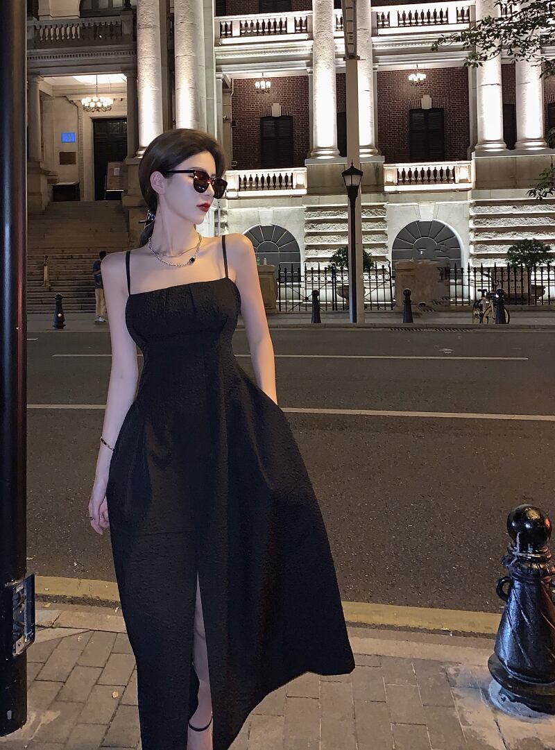 サマースタイル薄手ブラックドレス 夏物 ナナファッション55464732003