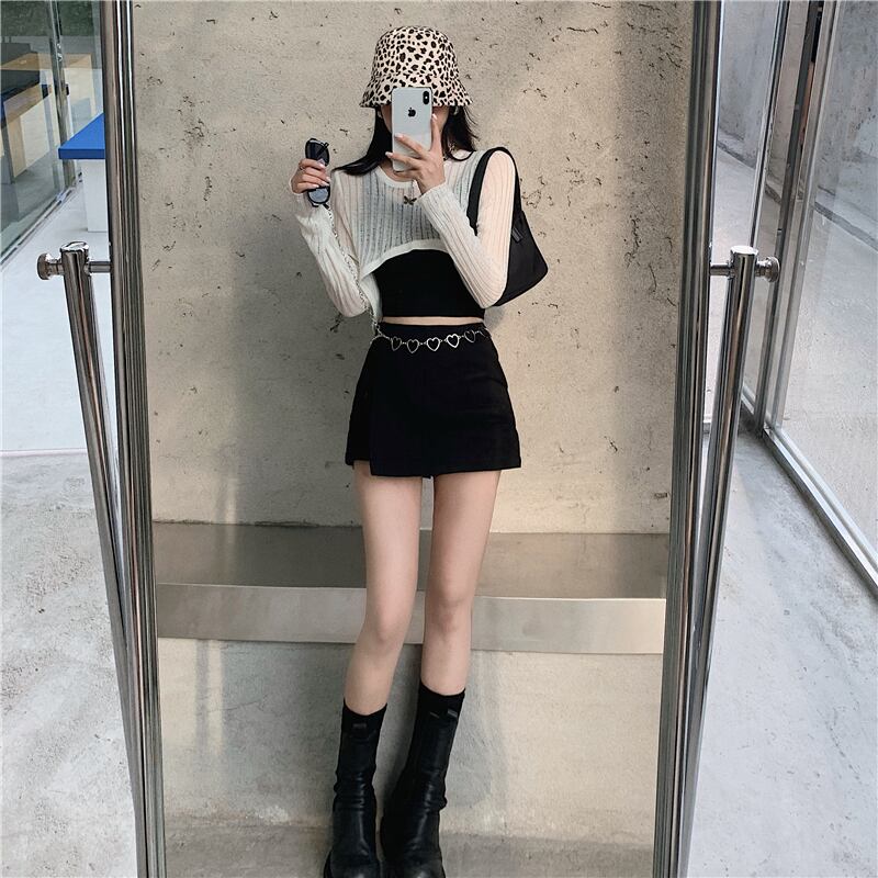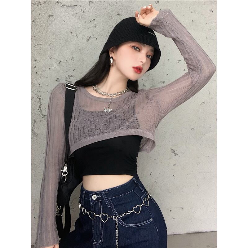 レッドサマーラウンドネックショートプルオーバー セーター ロング ストリート 夏物 Oネック ナナファッション87457516133