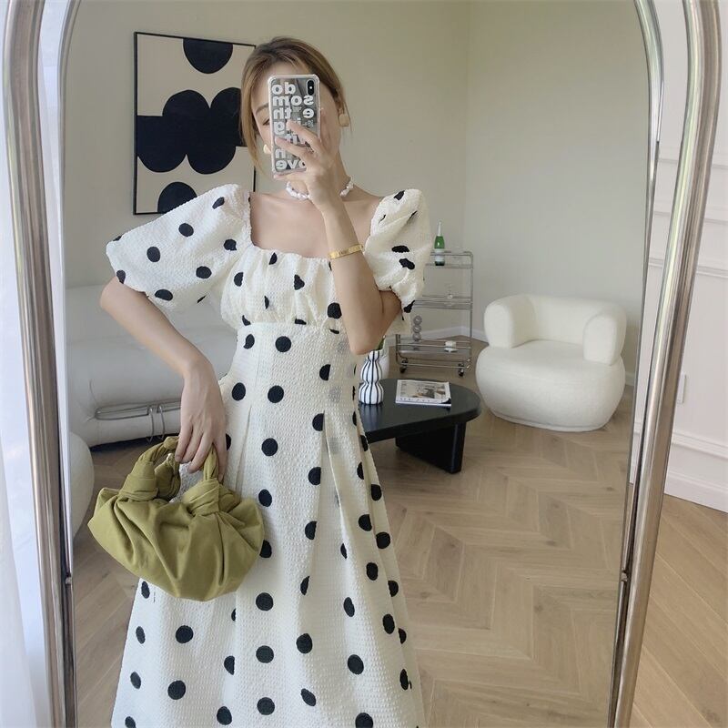 スタイルスリーブホルターリボンウェスト水玉ドレス サマースカート 夏物 ナナファッション22801973188