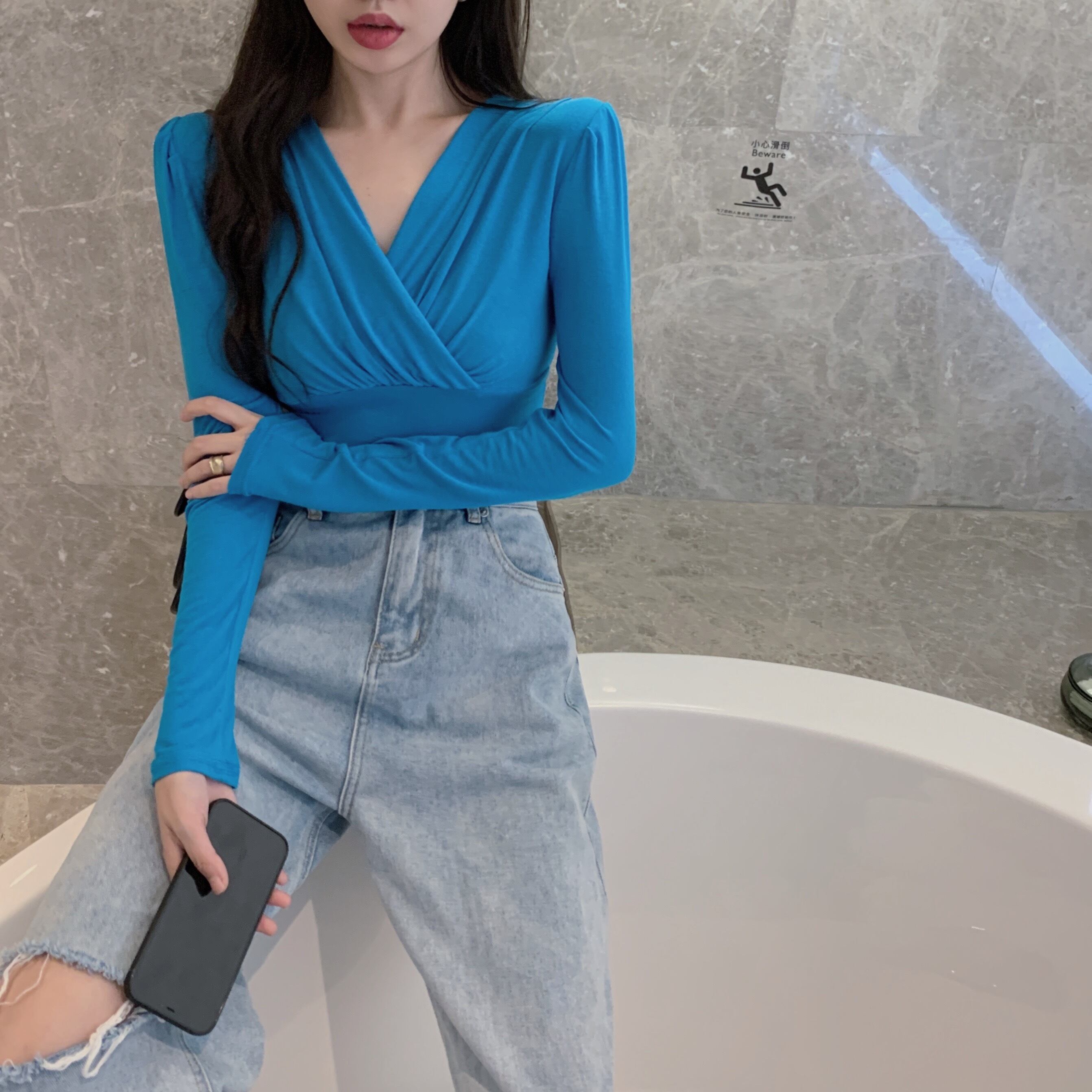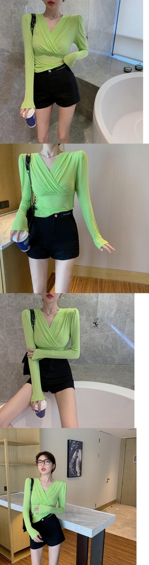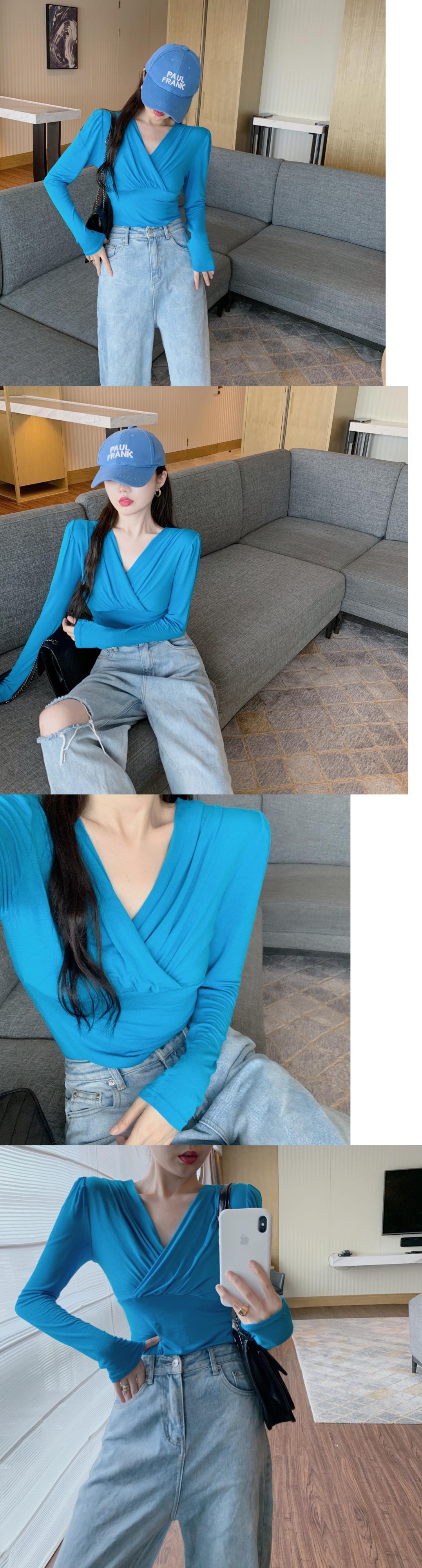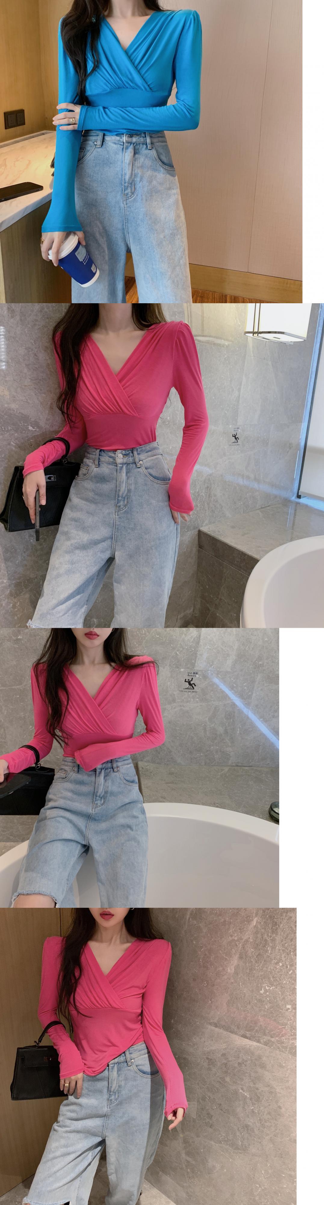 カジュアルクロスVネック薄手Tシャツ レディース ロング ナナファッション29648392335
