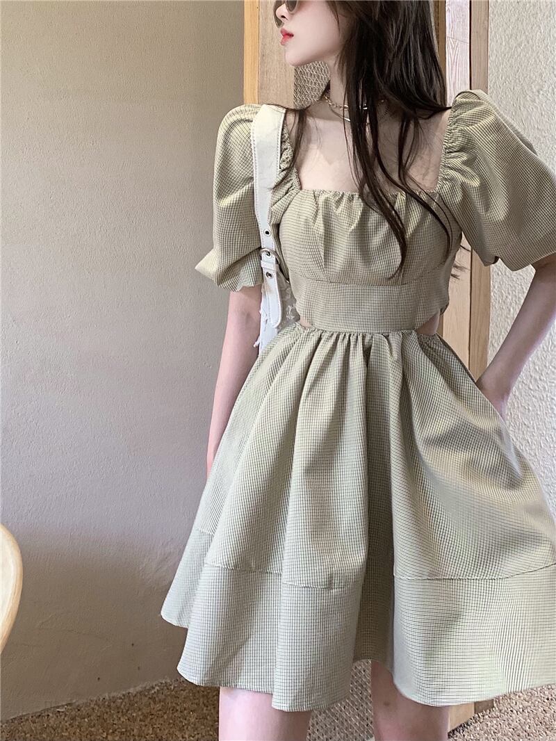 ドレス サマースリーブウェストカラーショートスカート 夏物 スクウェア ナナファッション80860121204
