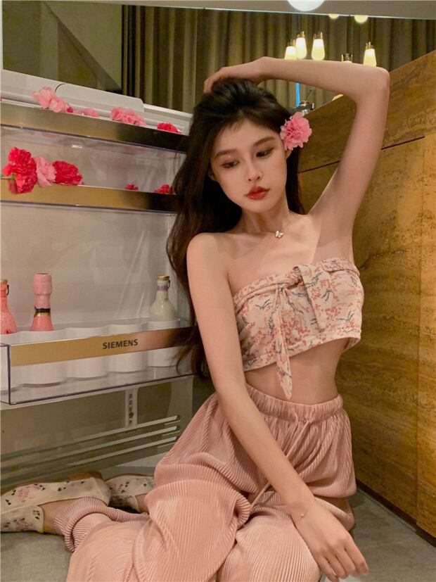 色:チューブトップ,日焼け止めニットトップ,プリーツパンツ