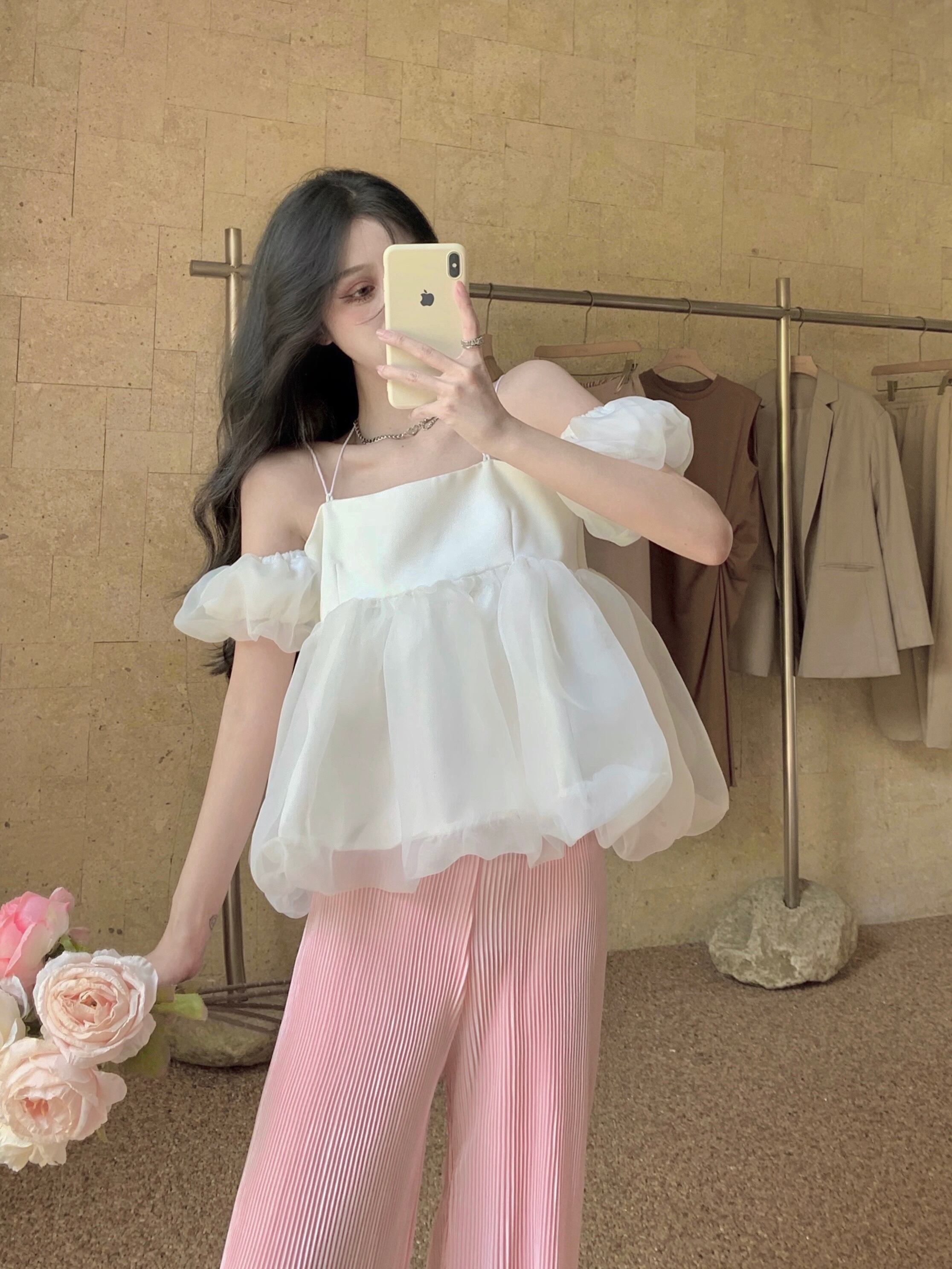 色:ホワイトトップ,ピンクのパンツ