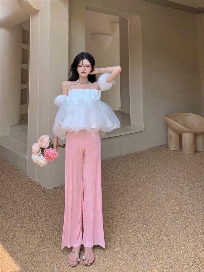 サマーブラウス ワイドレッグパンツ レディース ストリート 夏物 ワイドパンツ ナナファッション51149678747