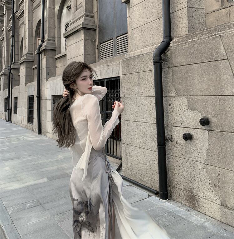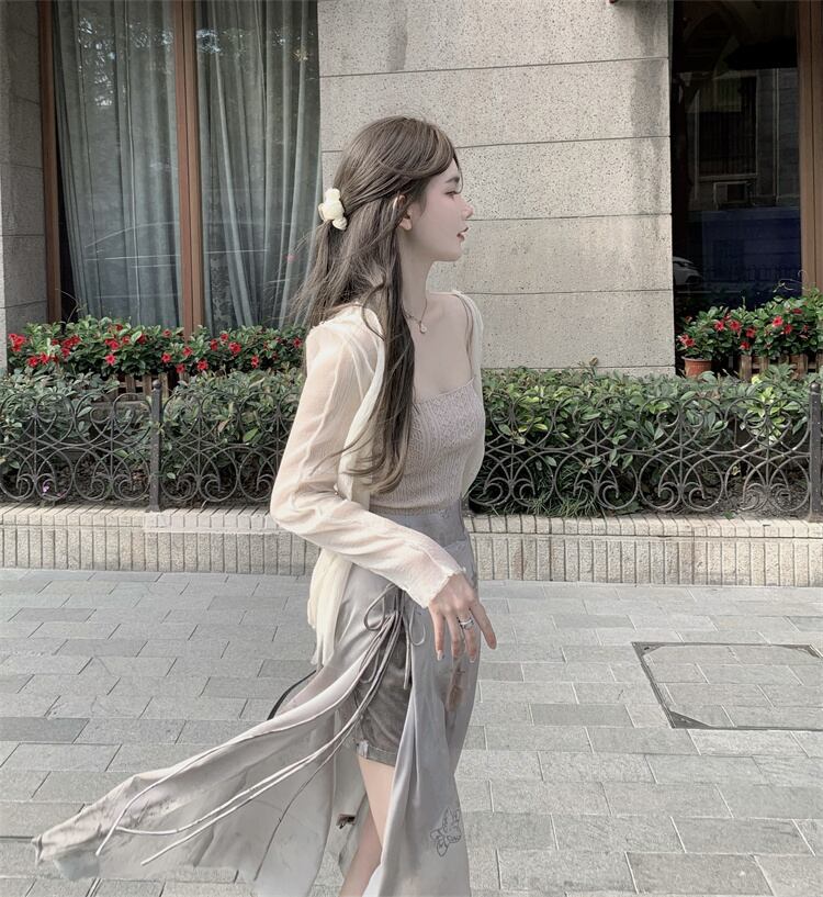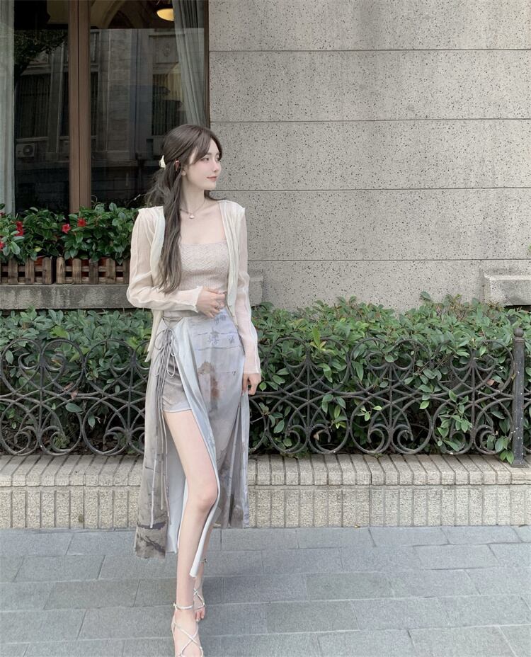 レディースサマー薄手シフォンカーディガンスカート ニット ストリート 夏物 ナナファッション87363341418