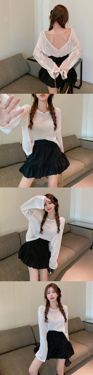 バックパール薄手ニットセーター ブラウス 真珠 ナナファッション56793211717