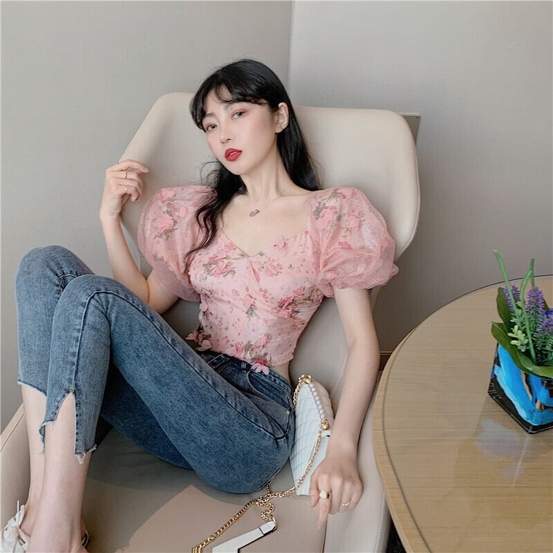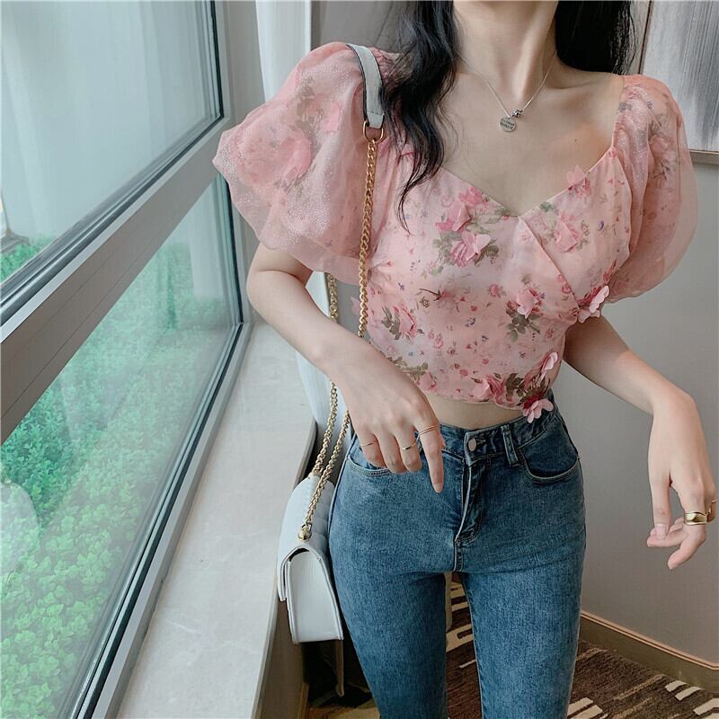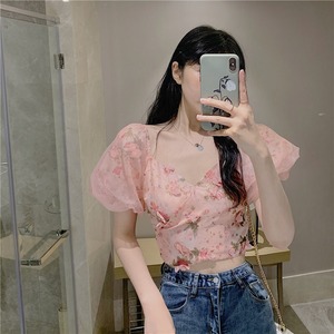 ショートスリーブVネックトップス サマーシフォンシャツ フローラルレディース 夏物 花柄 ナナファッション41723252625