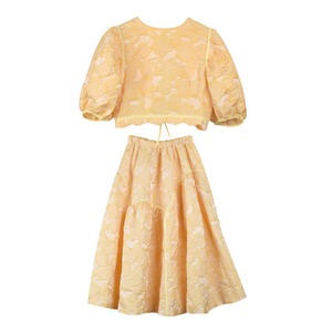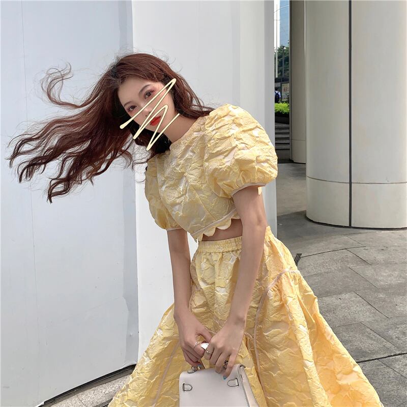 レディーススプリングサマースリーブショートトップス ハイウェストウェストAラインスカート 春物 夏物 ナナファッション50384663205