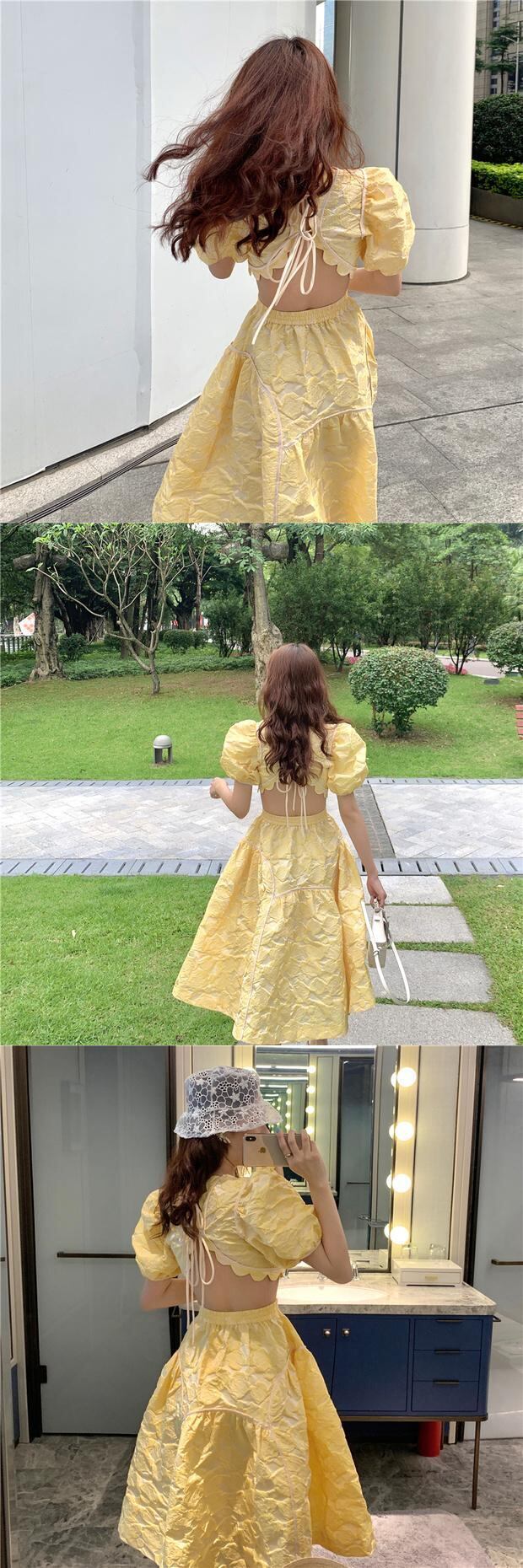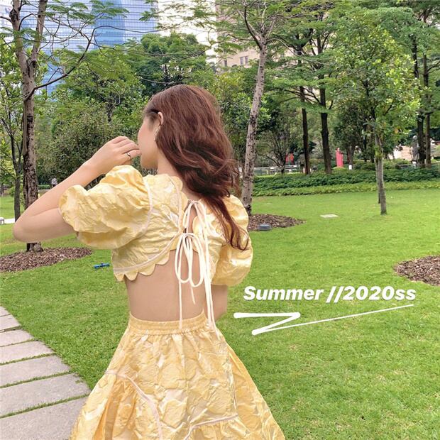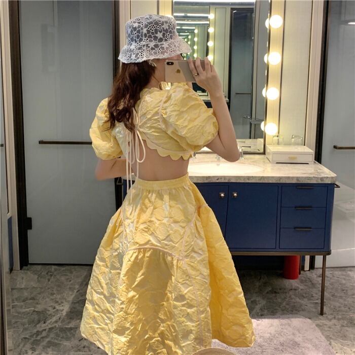 色:黄色のシャツ,黄色の大きなスイングスカート