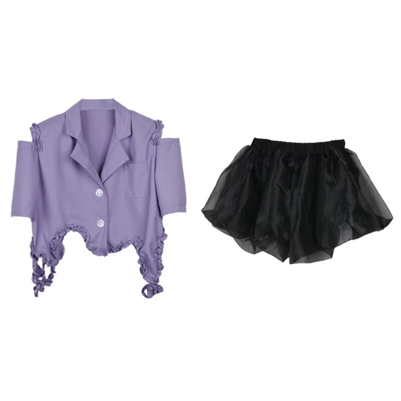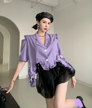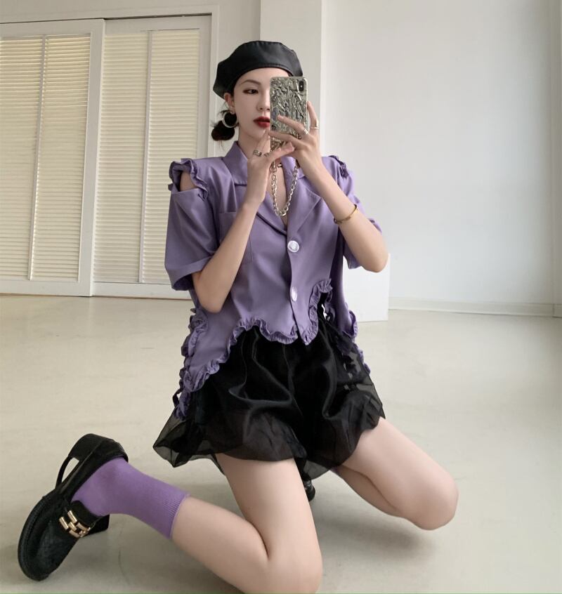 レッドサマーショートジャケット ハイウェストウェストパンツ ストリート 夏物 ナナファッション49483813537