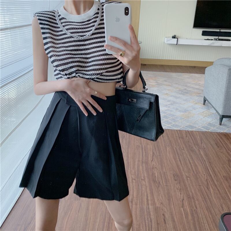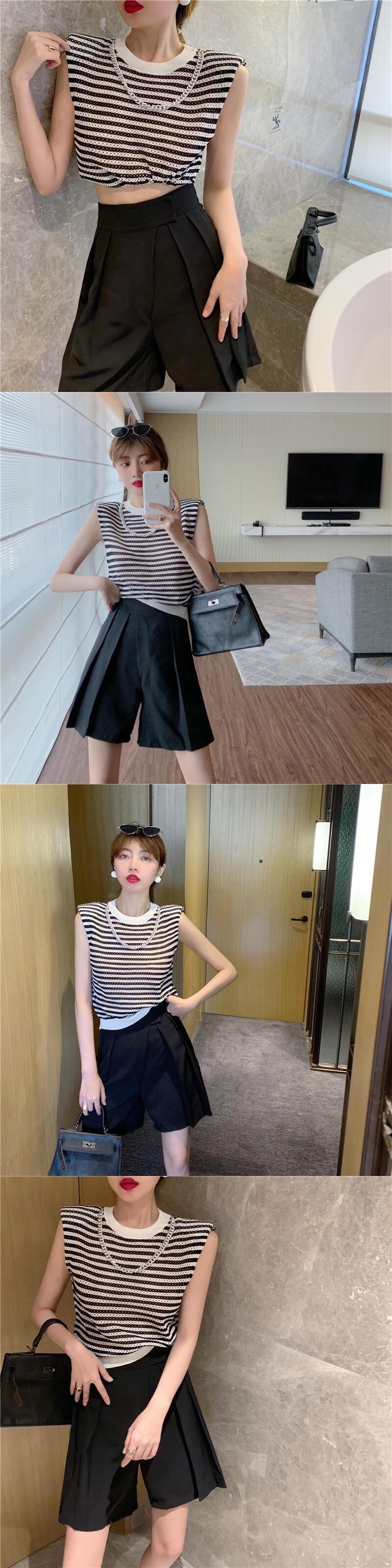 薄手トップス サマーショートストライプノースリーブチェーン セーター レディース 大人ガーリー スウィート キュート カジュアル 夏物 ナナファッション62421544722