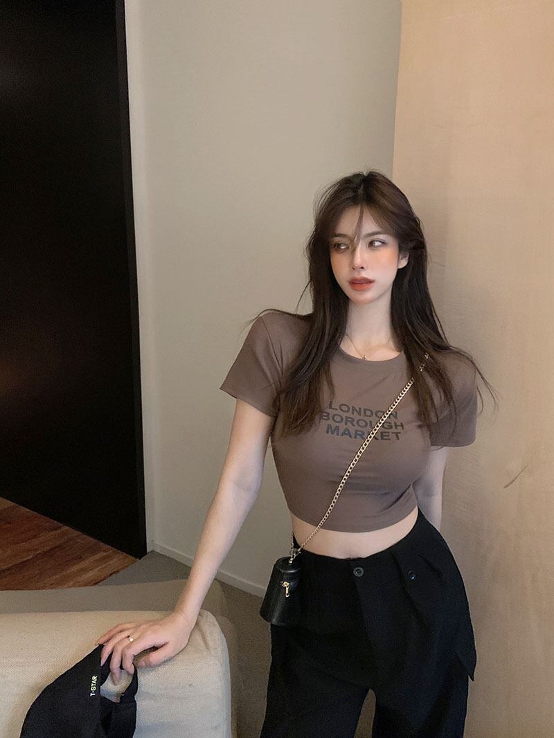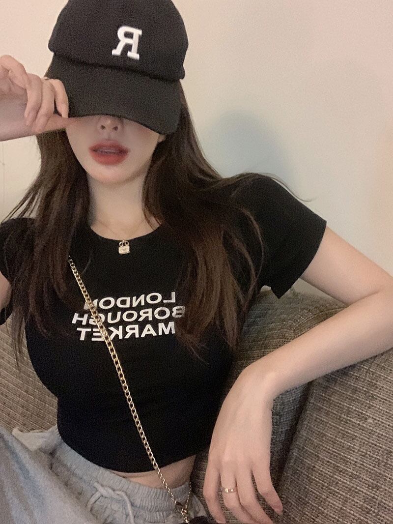 スタイルTシャツ サマースリムショートブラックブラウス レディース 夏物 ナナファッション80638893614