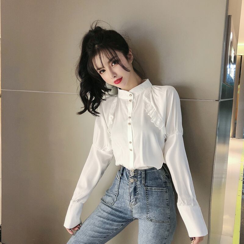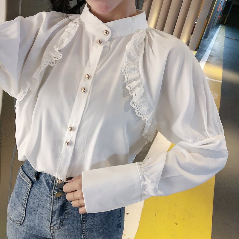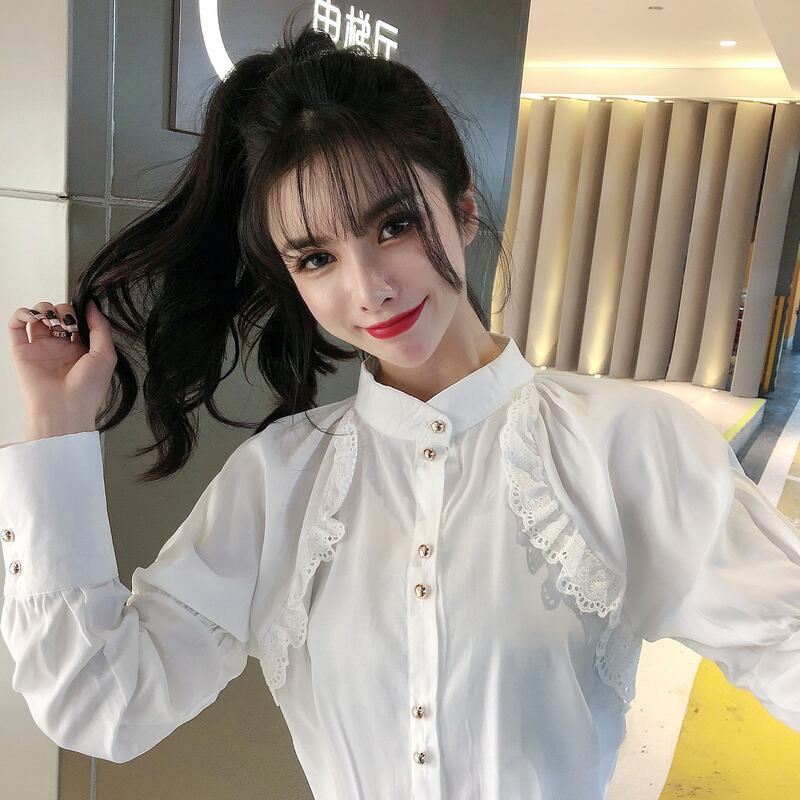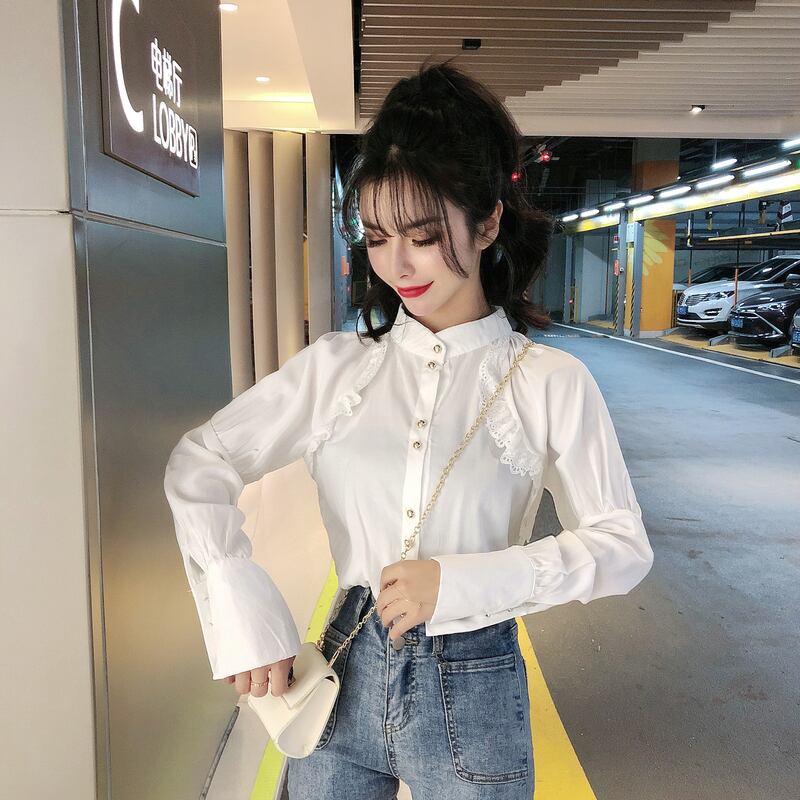 オータムカラーレースシャツ ホワイトレディース 秋物 ナナファッション54935646177