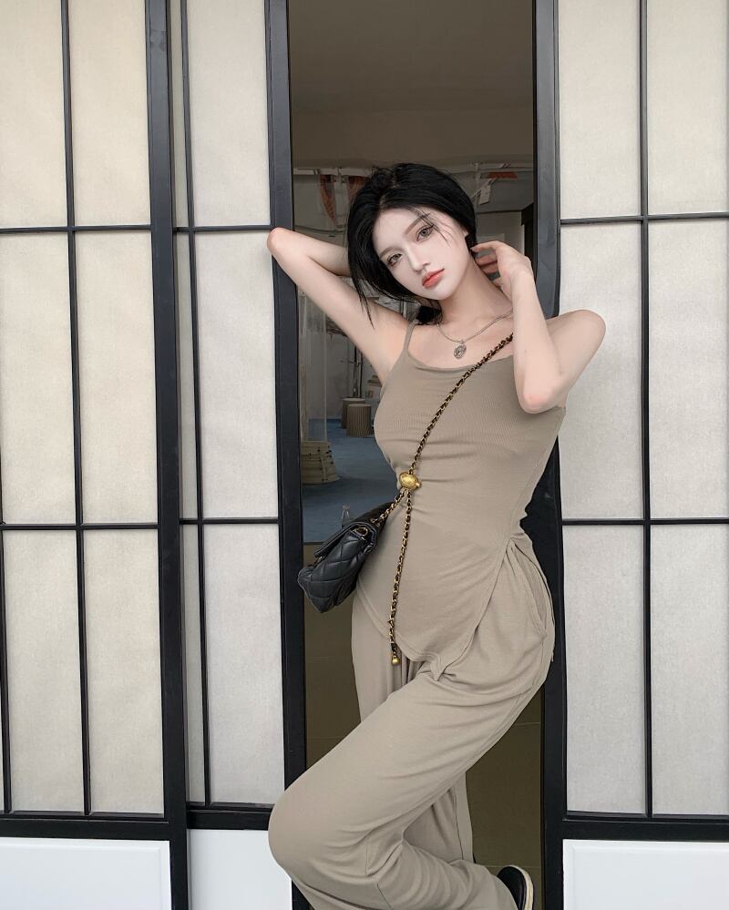 ハイウェストウェストカジュアルワイドレッグパンツ サマー ストリート 夏物 ワイドパンツ ナナファッション24395771571