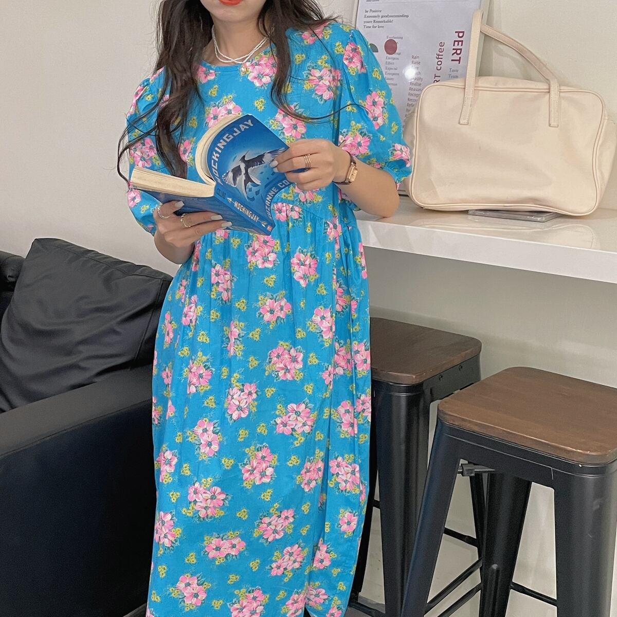 ドレス 薄手サマールーズフローラルロングスカート 夏物 花柄 ナナファッション6388633066