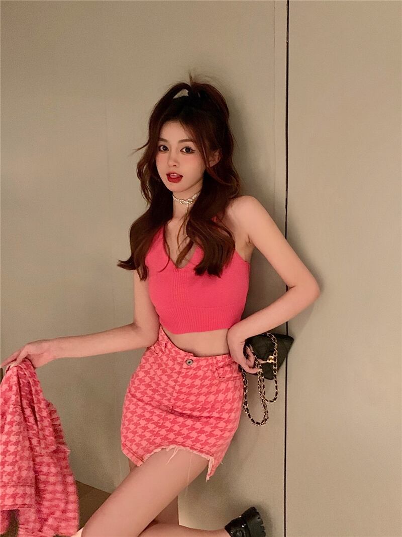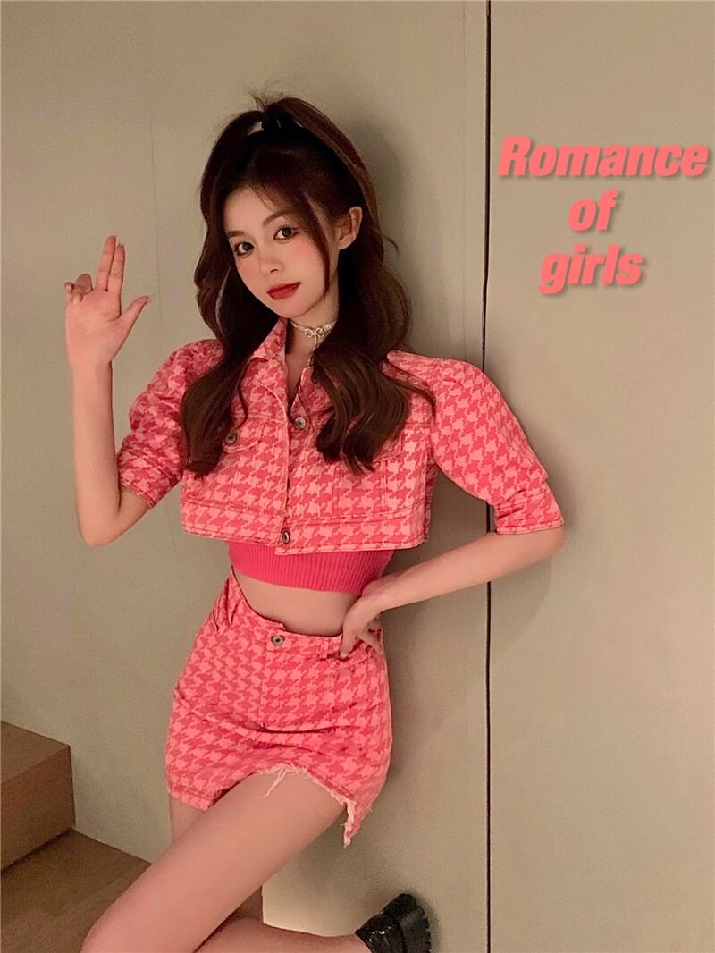 スカート サマーショート格子柄ジャケット レッド ストリート 大人ガーリー スウィート キュート カジュアル 夏物 ナナファッション17959841859