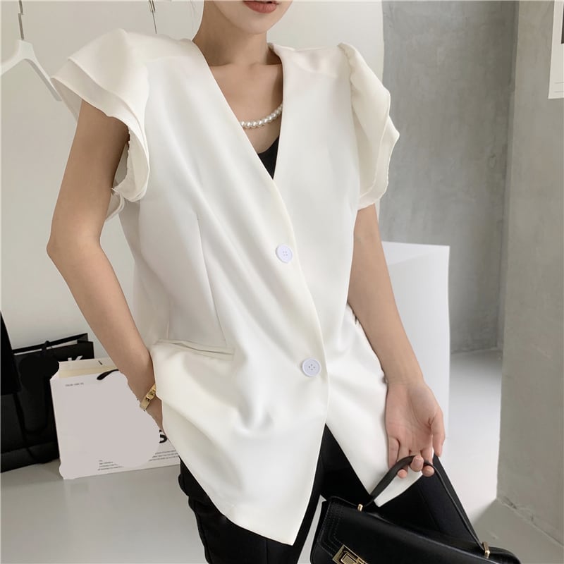 サマーVネックパールジャケット レース ブラウス ネックレス 夏物 真珠 ナナファッション31823313121