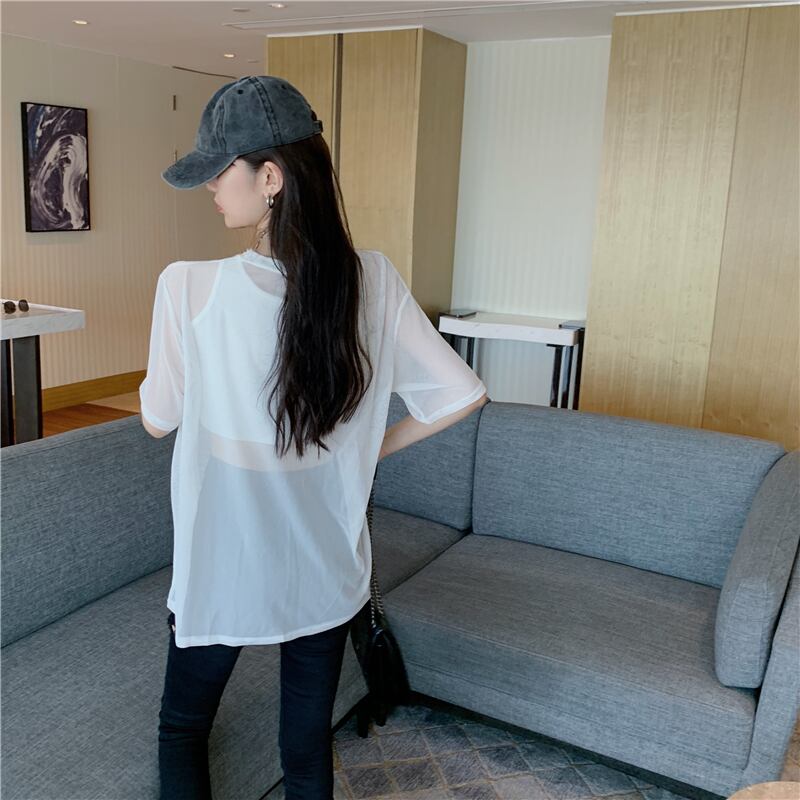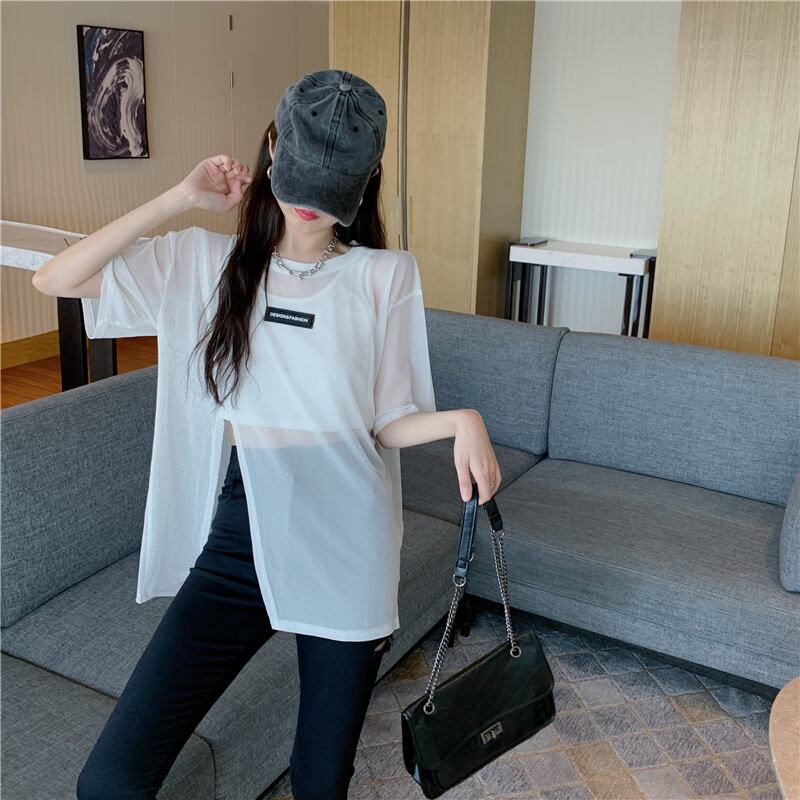 サマーメッシュブラウス ショートノースリーブ 半袖 ハーフスリーブ 夏物 ナナファッション82865005849