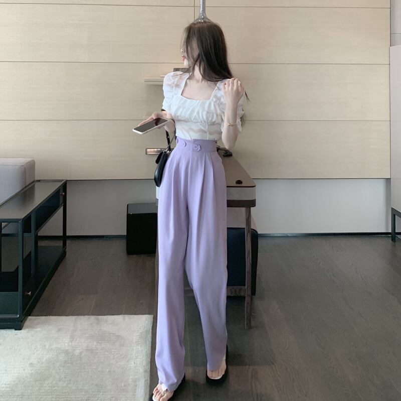 サマートップス ハイウェストウェストワイドレッグパンツ レディース ストリート 夏物 ワイドパンツ ナナファッション70618085589