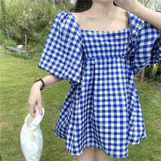 ドレス サマー薄手Aライン格子柄スカート 夏物 スクウェア ナナファッション28696986003