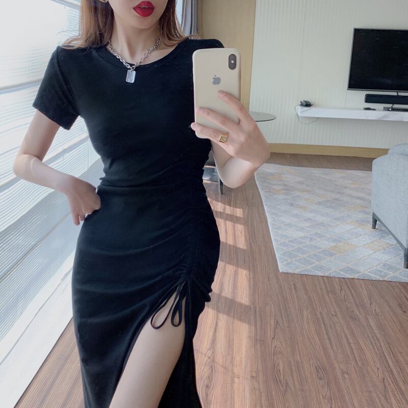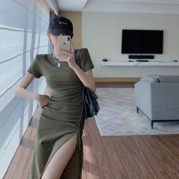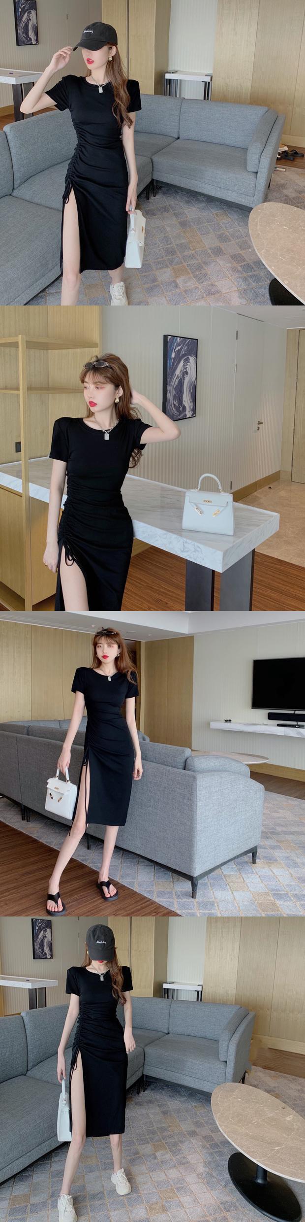 ギャザースリットドレス サマーウェストスカート 夏物 ナナファッション20695922417