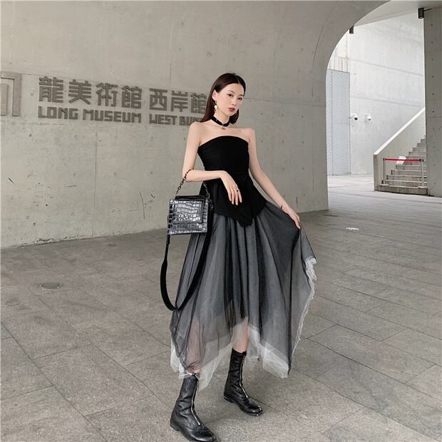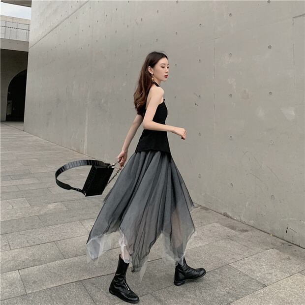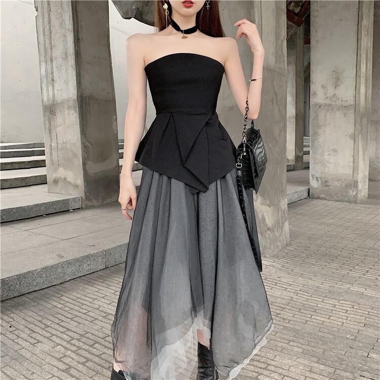 トップス ダークハイウェストスカート ふわふわ ナナファッション65853833984