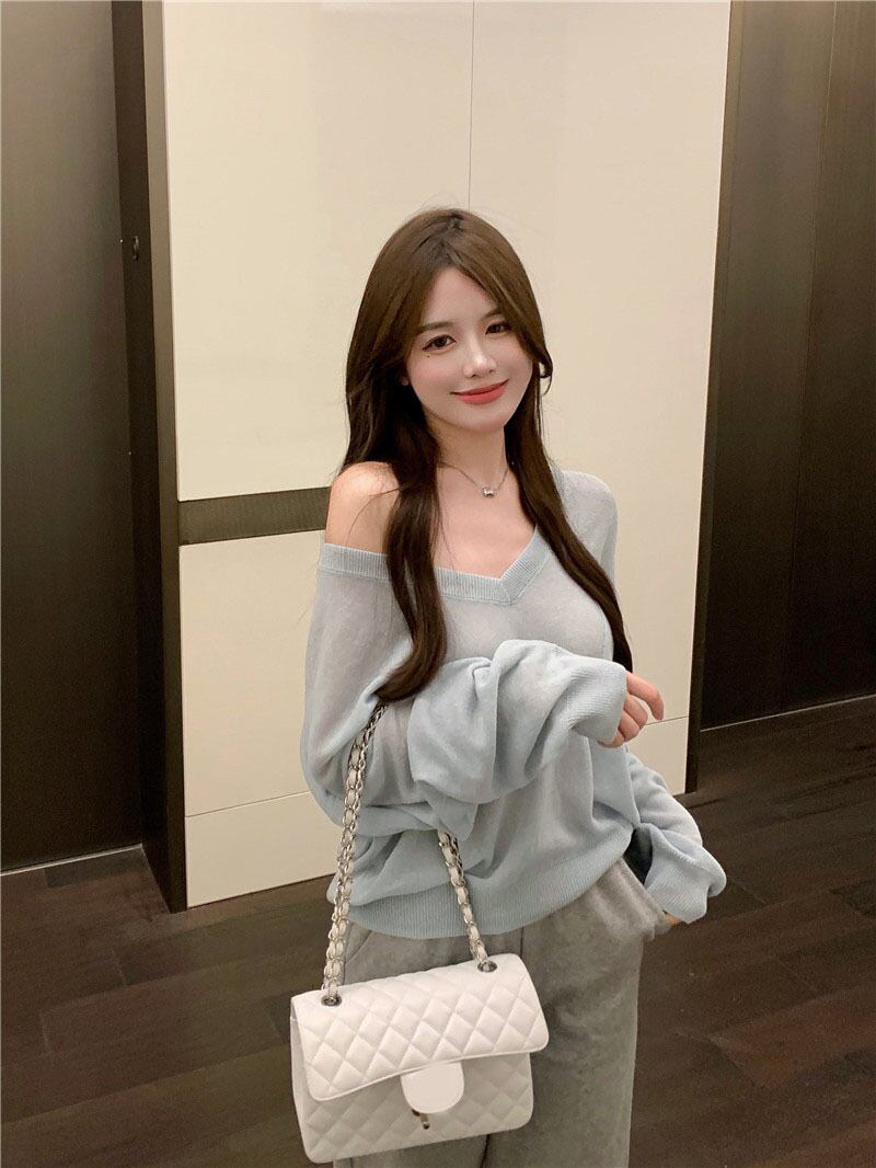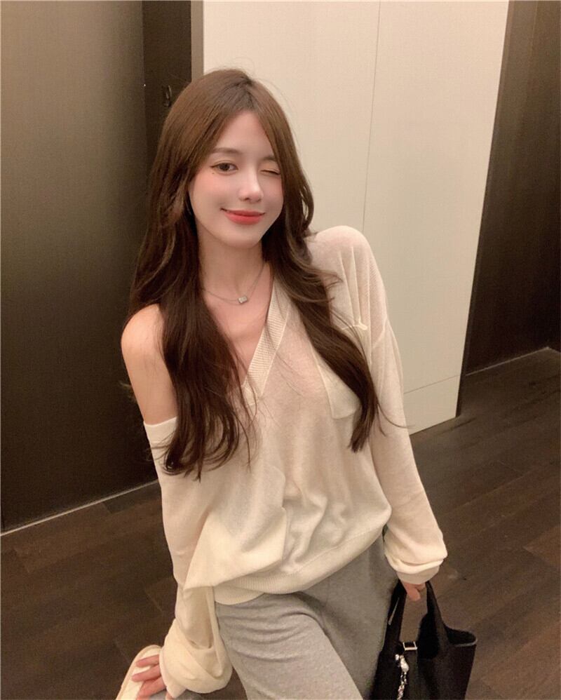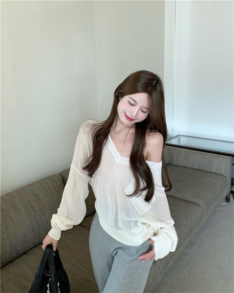 ニットブラウス オータム長袖スリーブショートルーズトップス ロング 秋物 ナナファッション4884798360