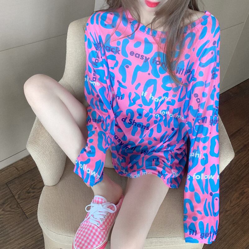 Tシャツ シャツ サマープリントルーズトップス ロング 夏物 ナナファッション12758777678