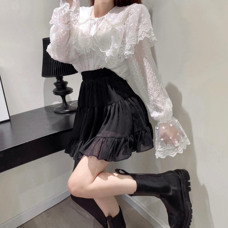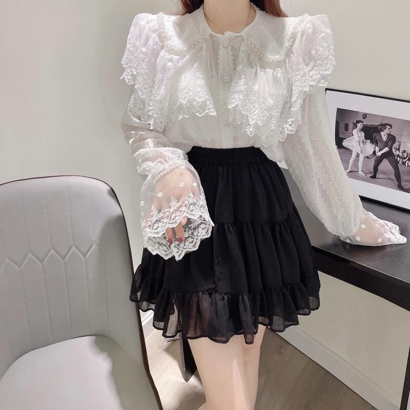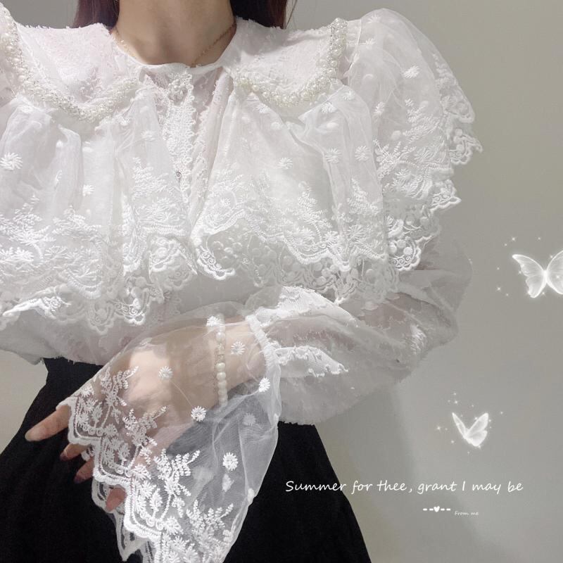オータムカラーレースシャツ スリーブスタイルブラウス レディース 大人ガーリー スウィート キュート カジュアル 秋物 ナナファッション65074129316