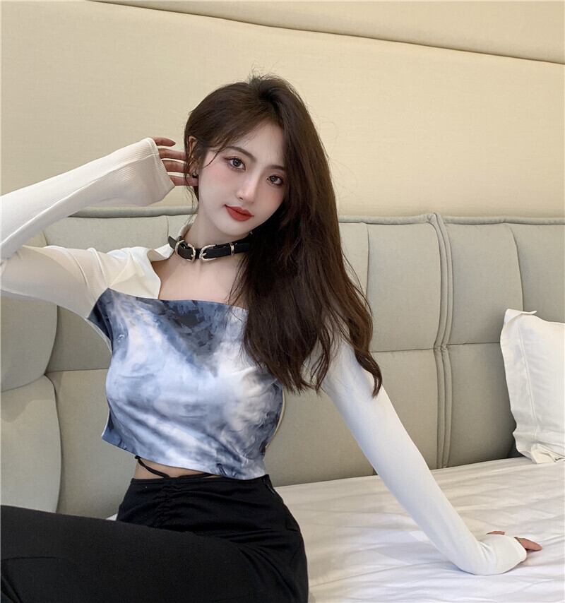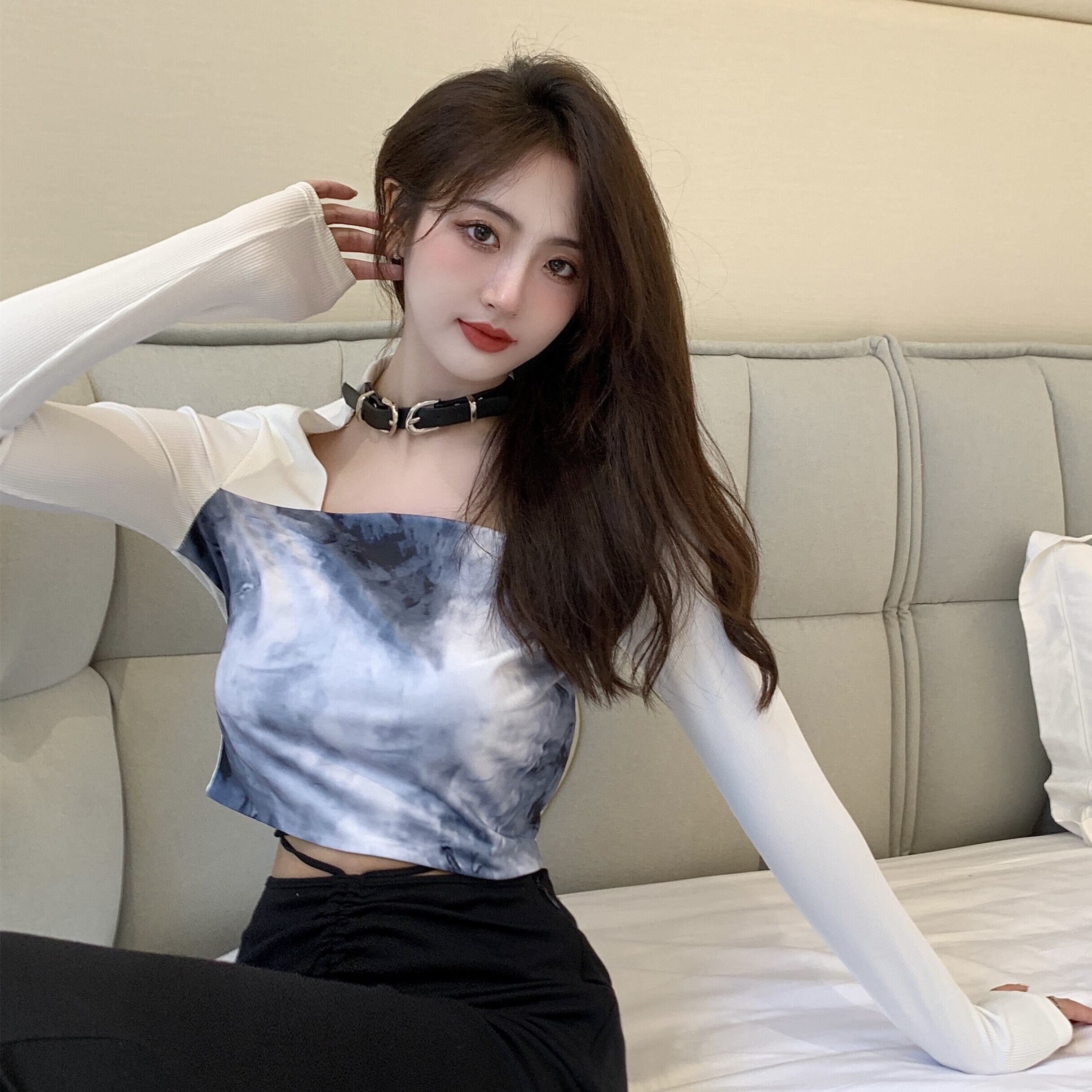 オータムシャツ ショートスリムTシャツ トップス ロング 秋物 スクウェア ステッチ ナナファッション60694401786