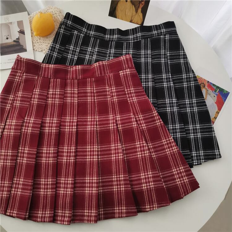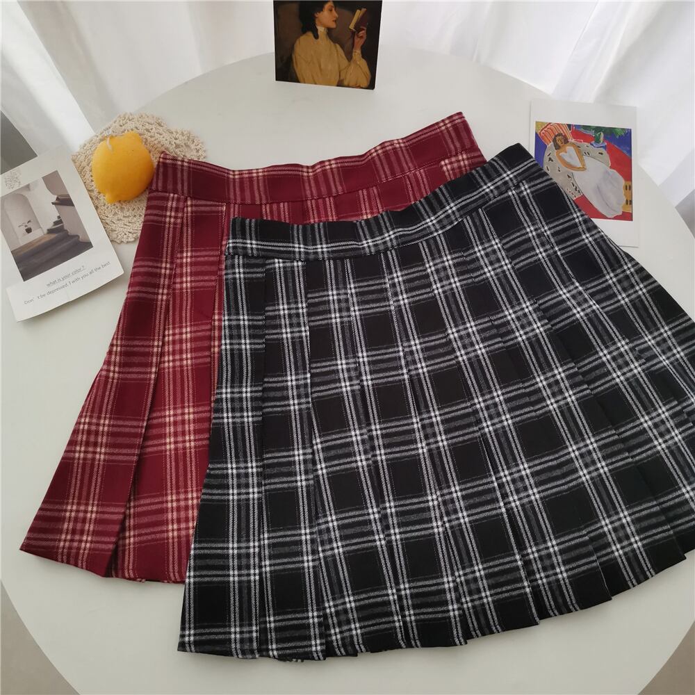 スタンダードスタイルハイウェストウェストスリム格子柄プリーツスカート Aライン レトロ ナナファッション98879178642