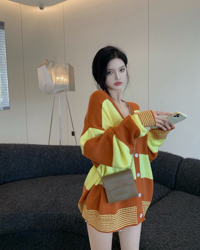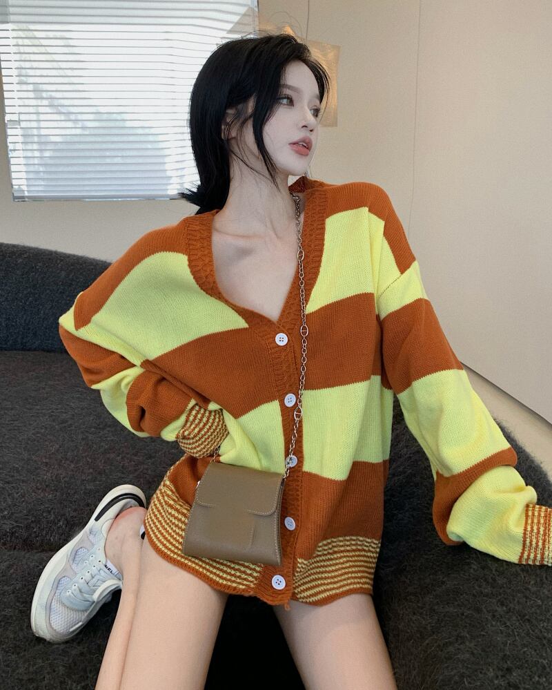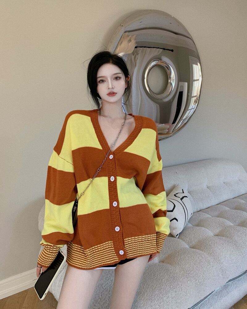 ニットカーディガンオータムスタイルストライプルーズセーター コート 秋物 ナナファッション80193179926