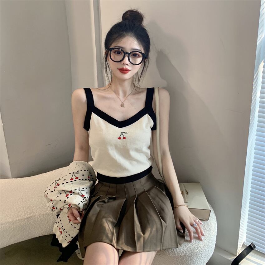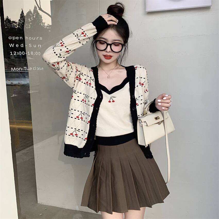 ニット薄手ジャケット ハイウェストプリーツスカート ロング ナナファッション28357598714