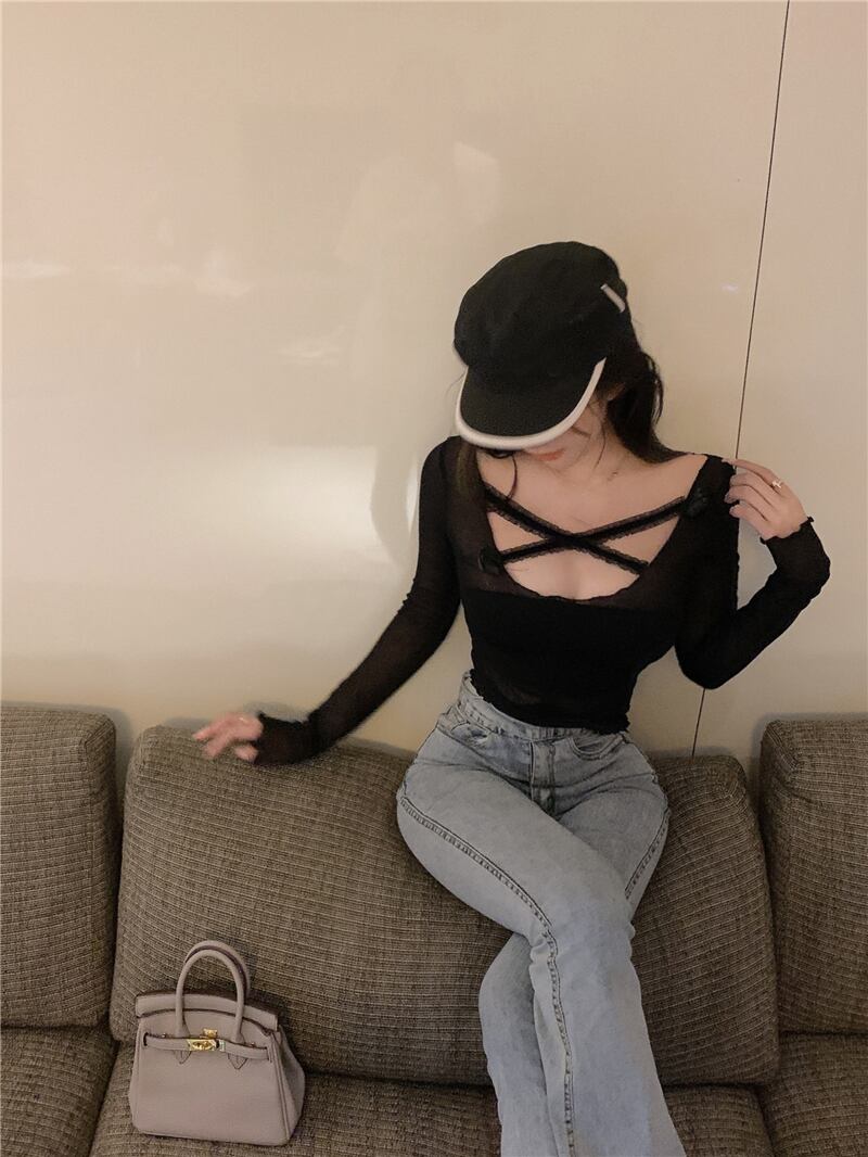 スタイルTシャツ スタンダード薄手Vネックトップス ロング レトロ ナナファッション69106523673