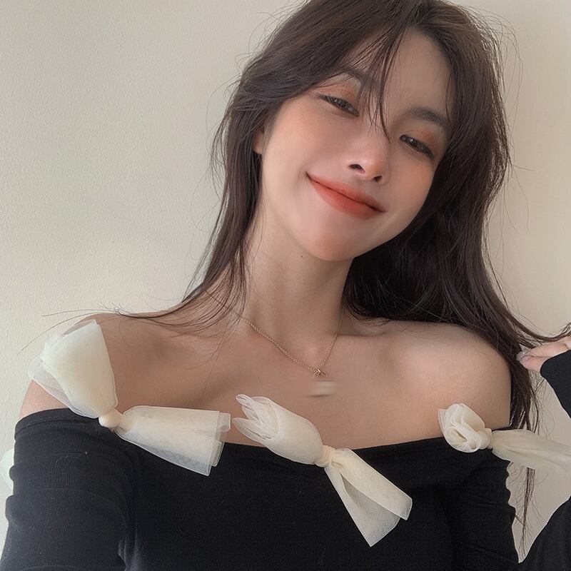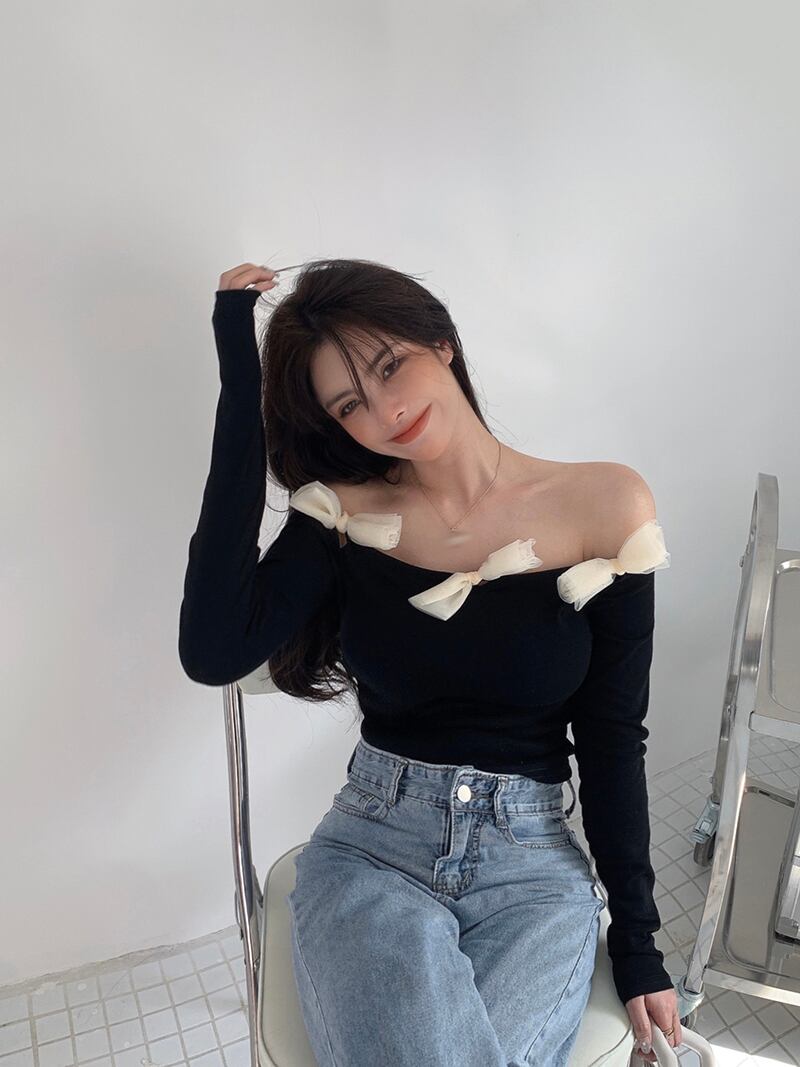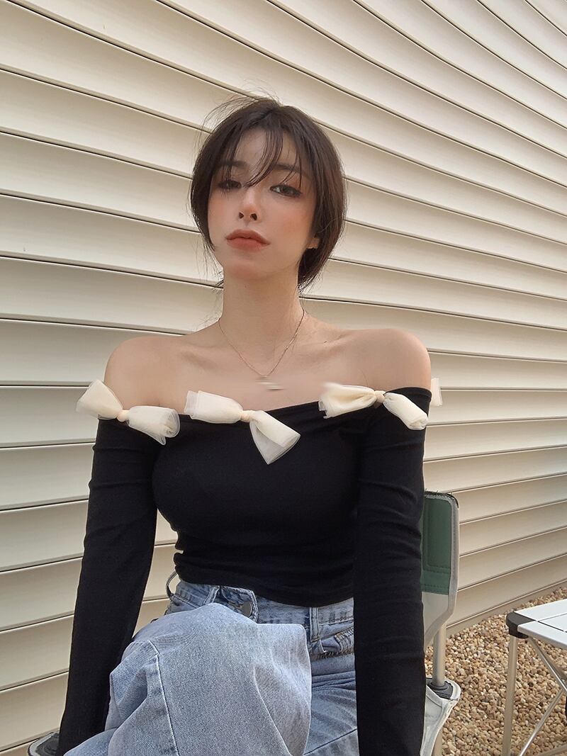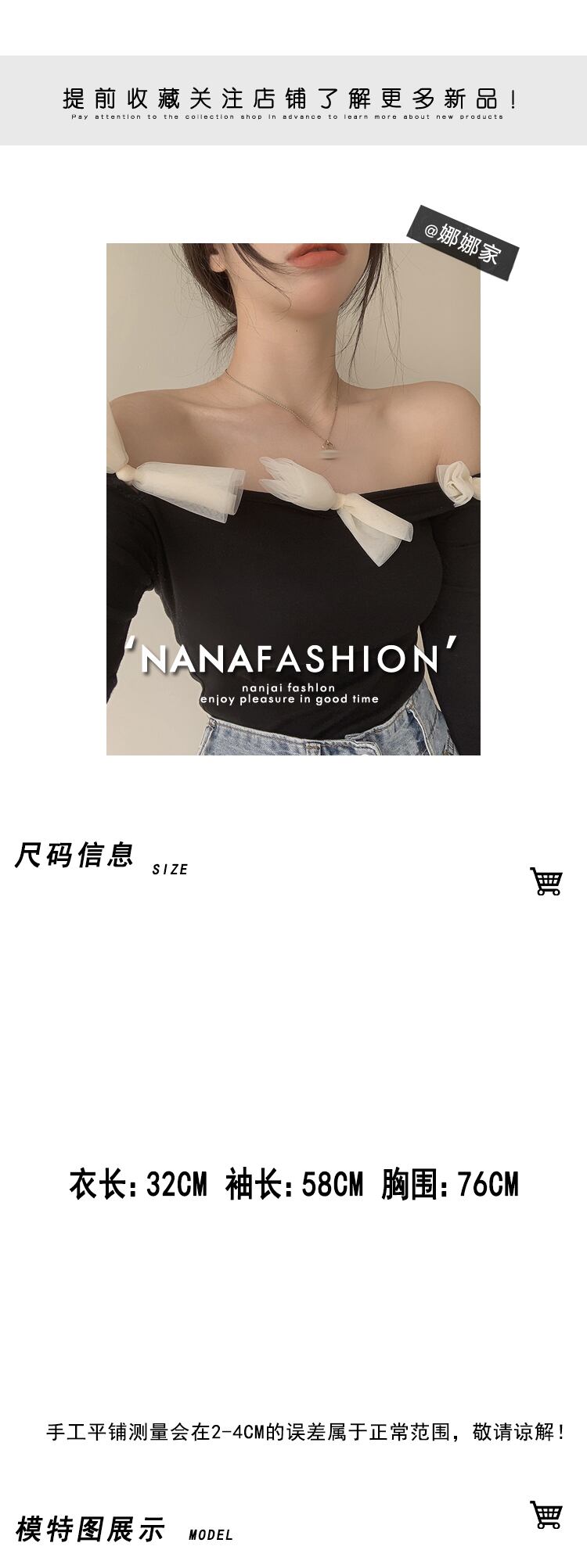 ショートトップス オータムリボンTシャツ ロング 秋物 ナナファッション57010726418