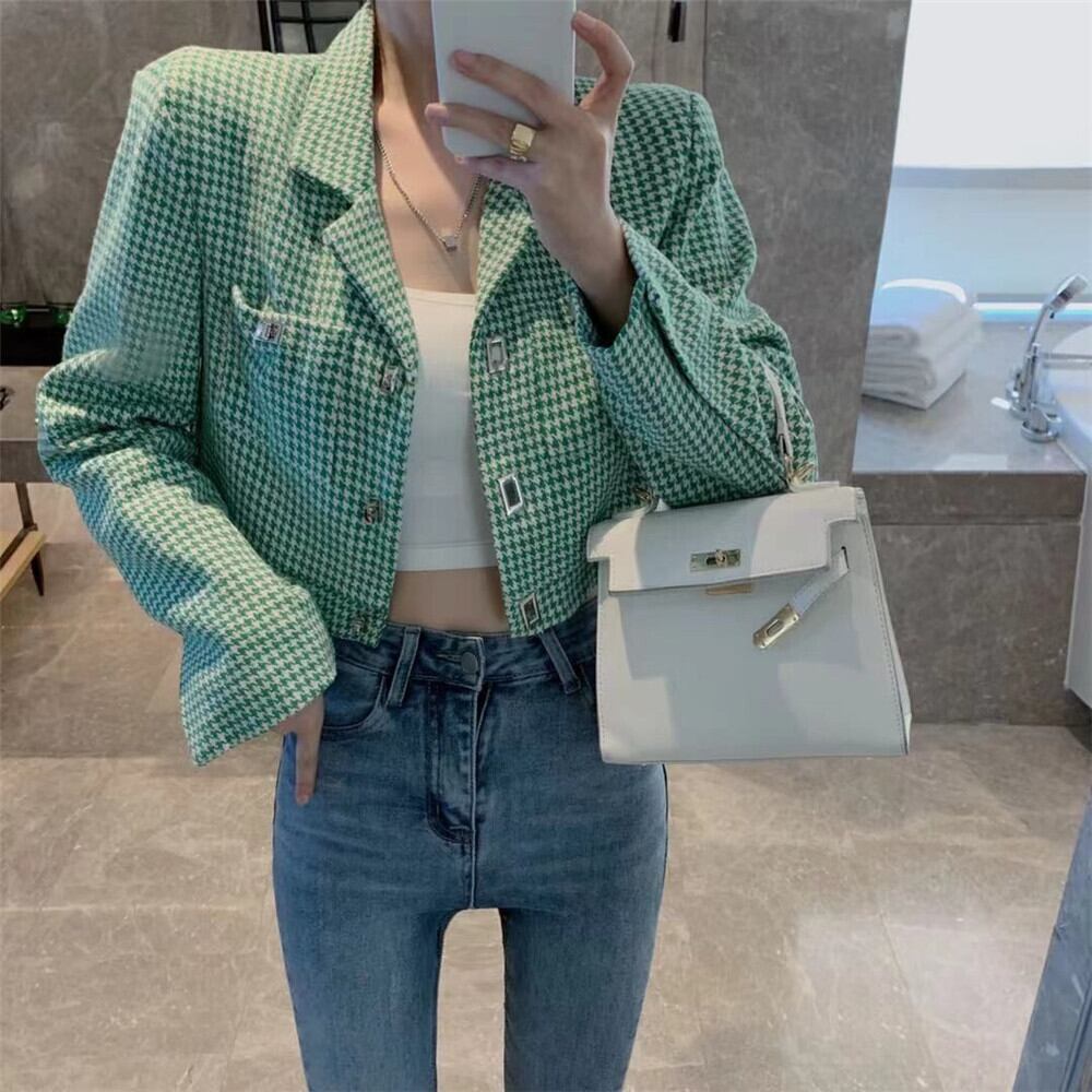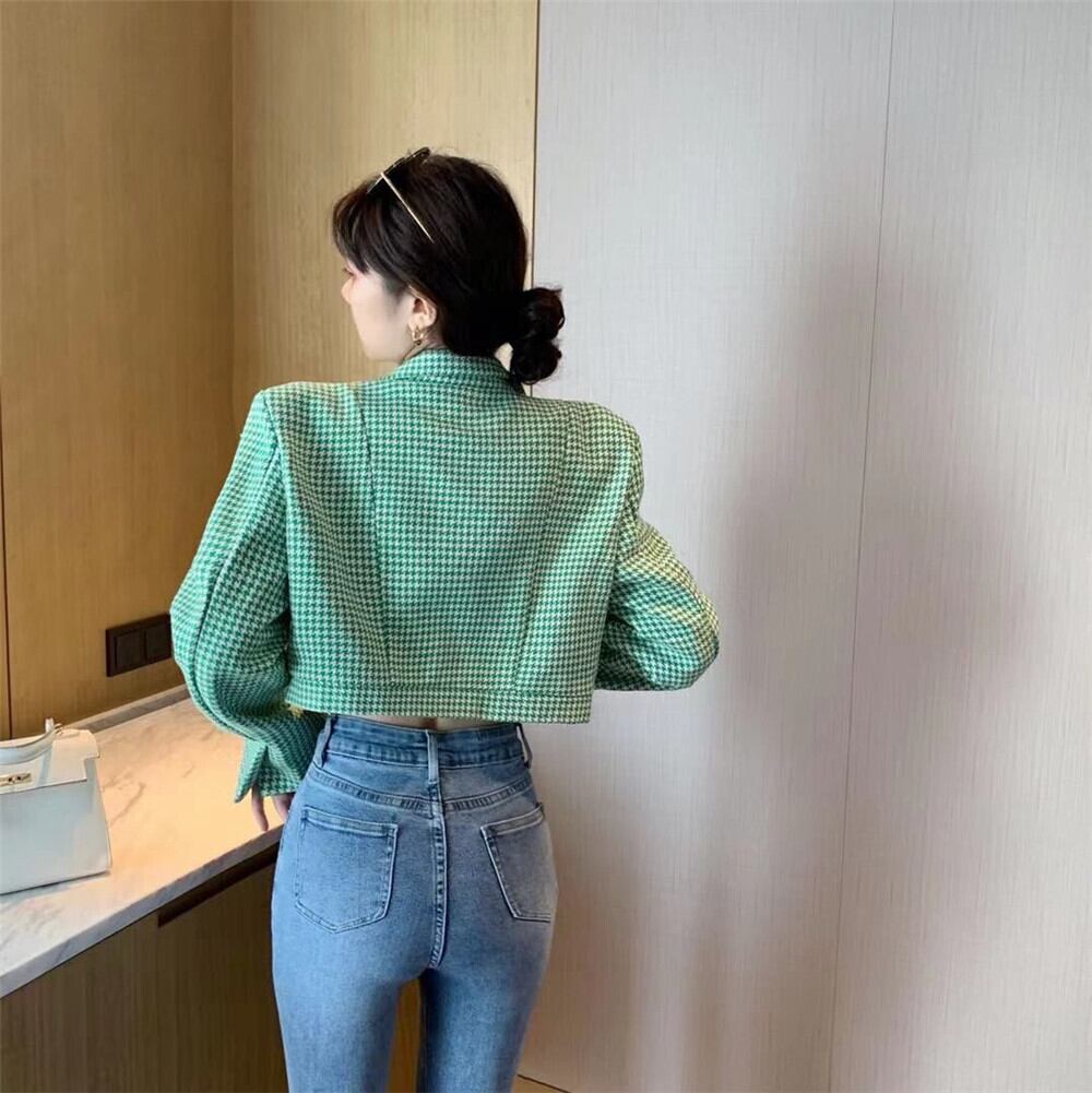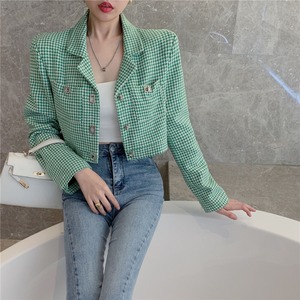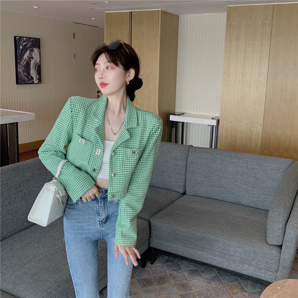 グリーンショートジャケット オータムカーディガントップス ロング 秋物 ナナファッション96447375888