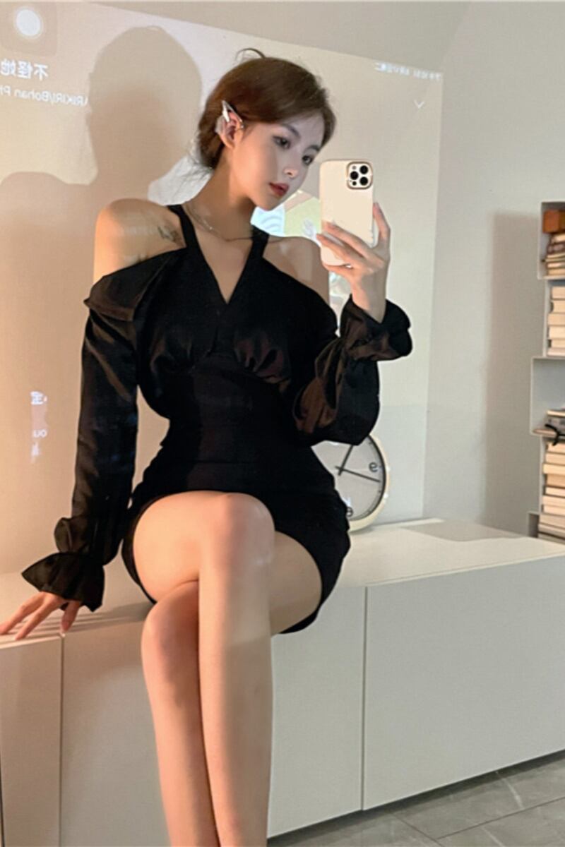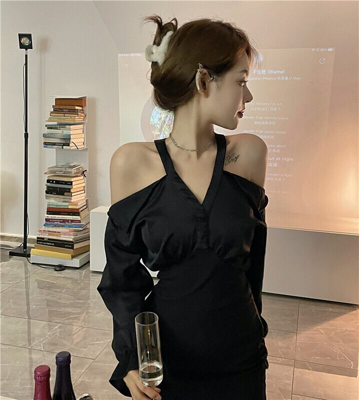ストラップレスドレス オータムブラックハイウェストウェストスカート ストリート 秋物 ピュア ステッチ ナナファッション159063455