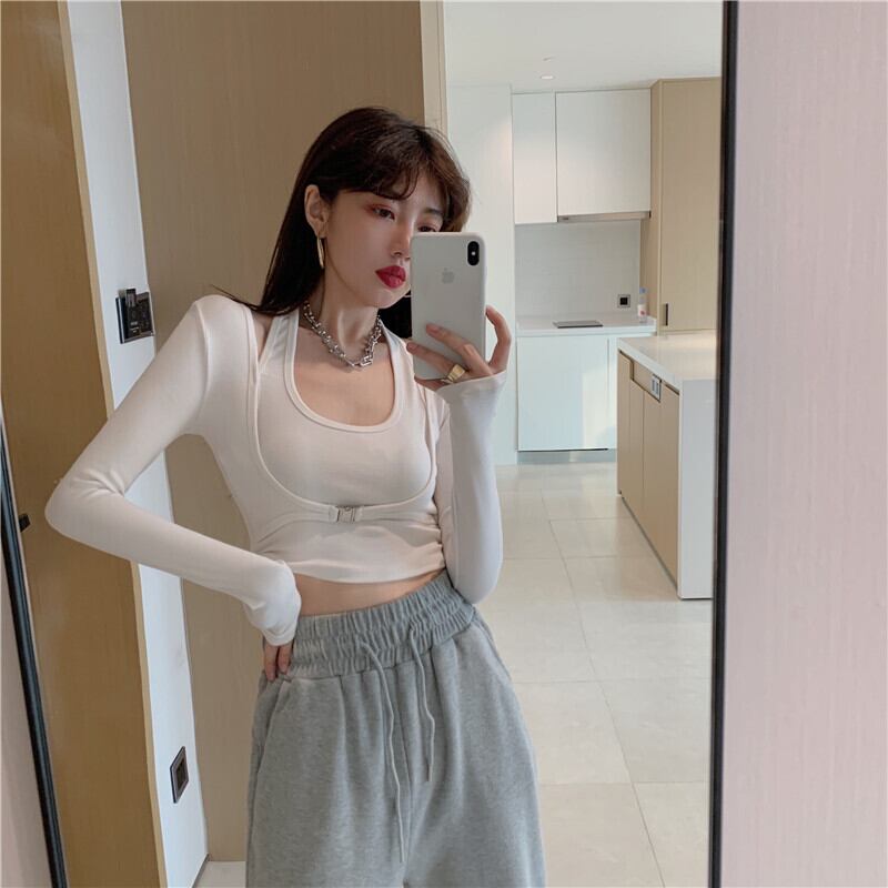 シャツ オータムスリムソリッド カラーショートTシャツ トップス レディース ロング 秋物 ソリッドカラー ナナファッション6124431953