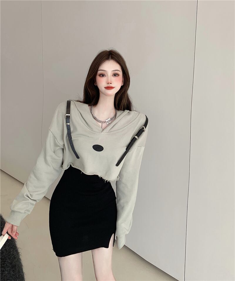 フードルーズクロップドトップス ソリッド カラースカート オータム ロング 秋物 ソリッドカラー ナナファッション99065499810