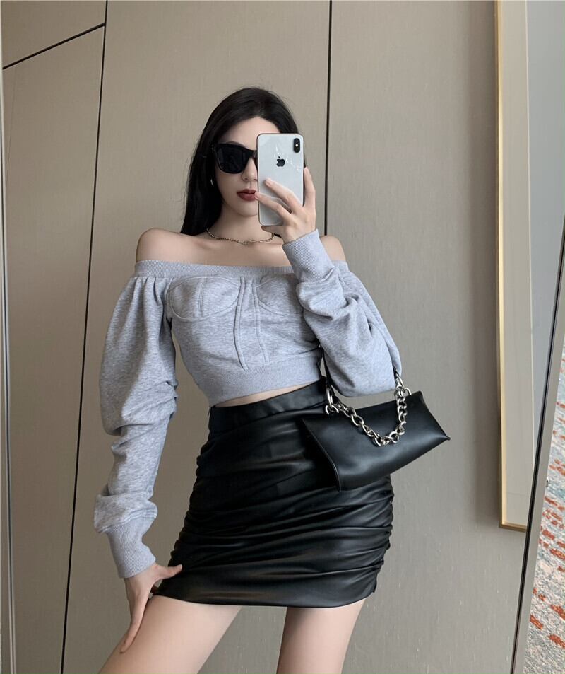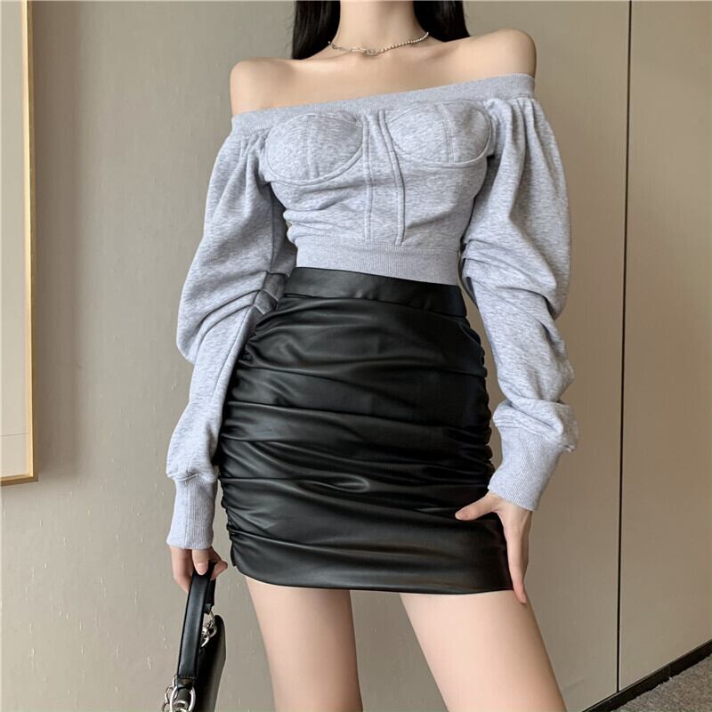 オータムセーター ハイウェストプリーツレザー ランタンスリーブ 秋物 スカート ナナファッション63320228632