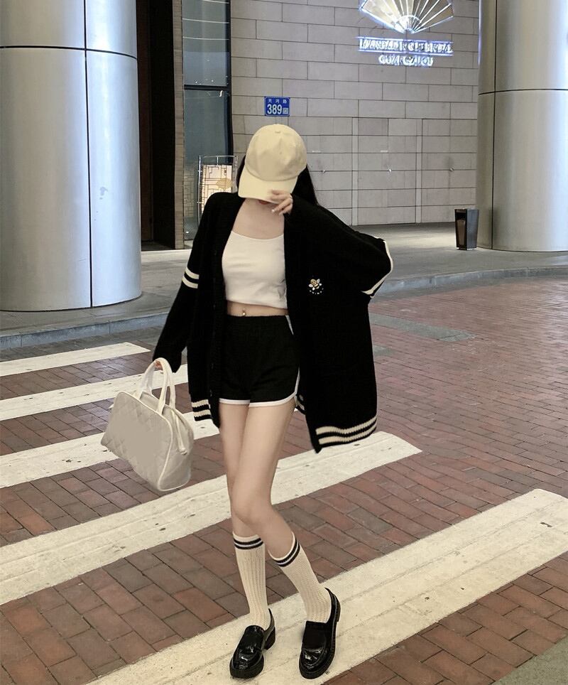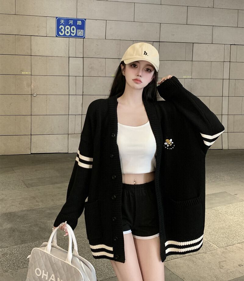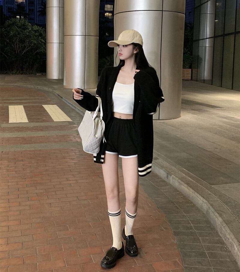 ストライプニットカーディガンVネックセーター ジャケット ショーツ セット レディース ブルマー ナナファッション2151372299