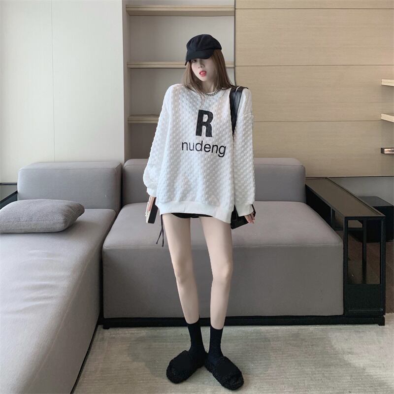 オータムラウンドネックプリントプルオーバー ブラウス ルーズカジュアルセーター レディース ロング 秋物 Oネック ナナファッション31579523525