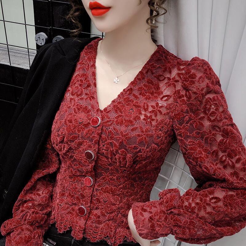 • スタンダードベルベットジャカードレースVネックシャツ オータムウィンタートップス レトロ 秋物 冬物 ナナファッション23972625382 スタンダードベルベットジャカードレースVネックシャツ オータムウィンタートップス レトロ 秋物 冬物 ナナファッション23972625382 ¥4,490