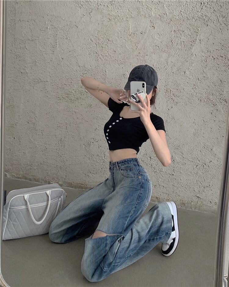 ジーンズ オータムハイウェスト薄手ルーズ 秋物 ナナファッション88397939524